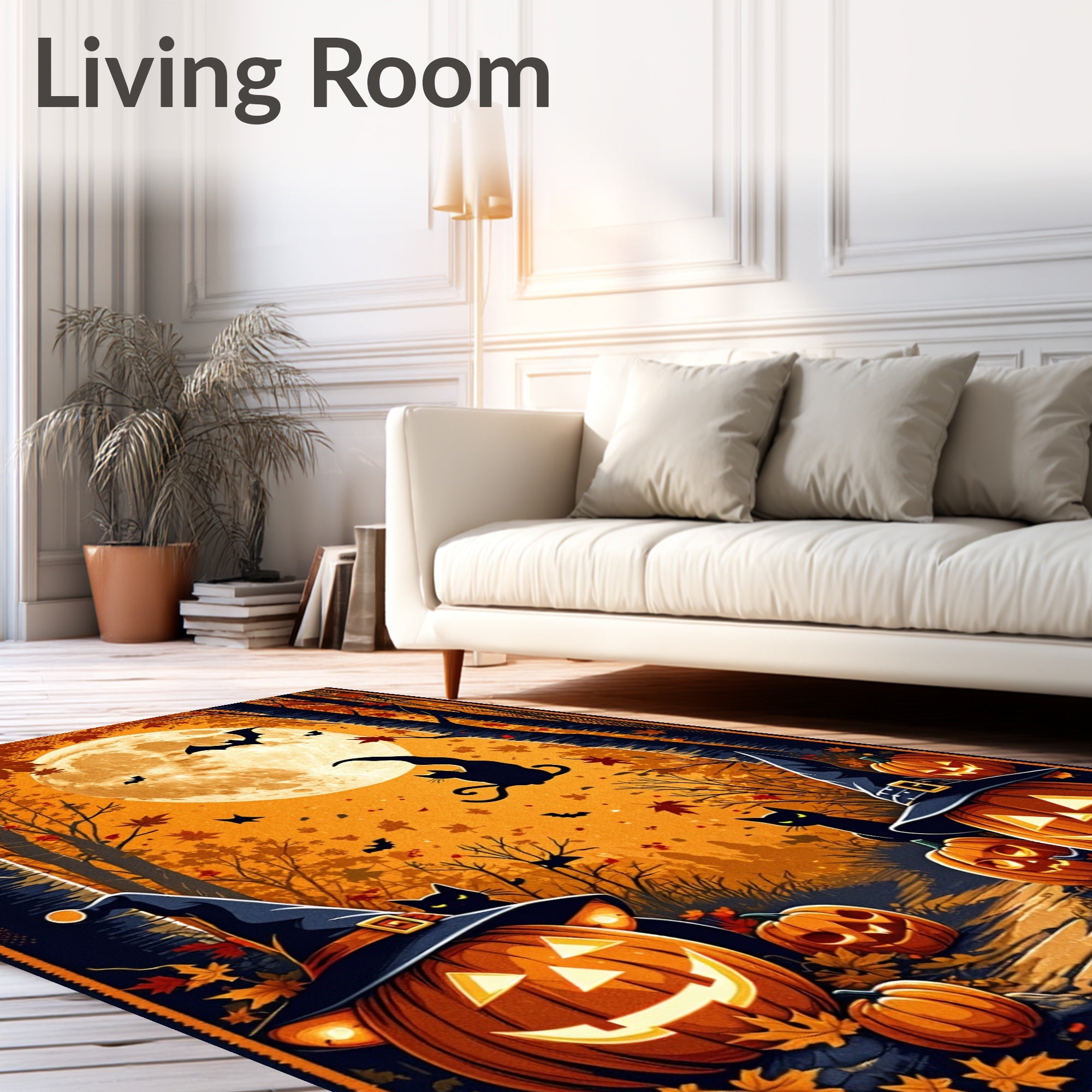 Flatwoven High Traffic Area Rug, Halloween Gnome Pumpkin Cat with Whimsical Spiderweb Accents, Non Slip, Stain Resistant, Washable Area Rugs for Living Room, Bedroom (Orange) Overview: