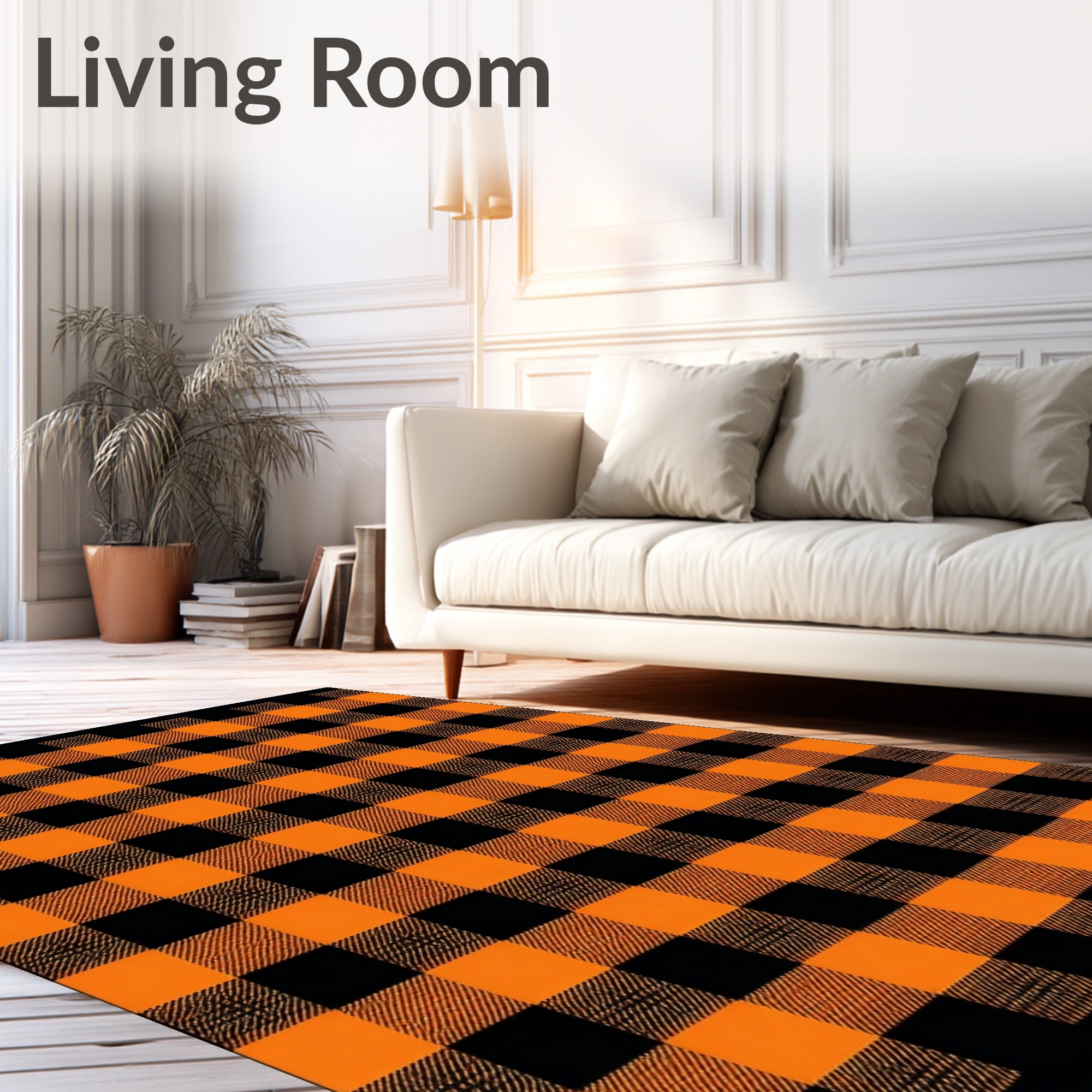 Ultra Soft Area Rug, Non Slip, Stain Resistant, Washable Area Rugs for Living Room, Bedroom, Halloween Plaid Area Rug Spooky Black & Orange Carpet with Pumpkin Design(Orange) Overview: