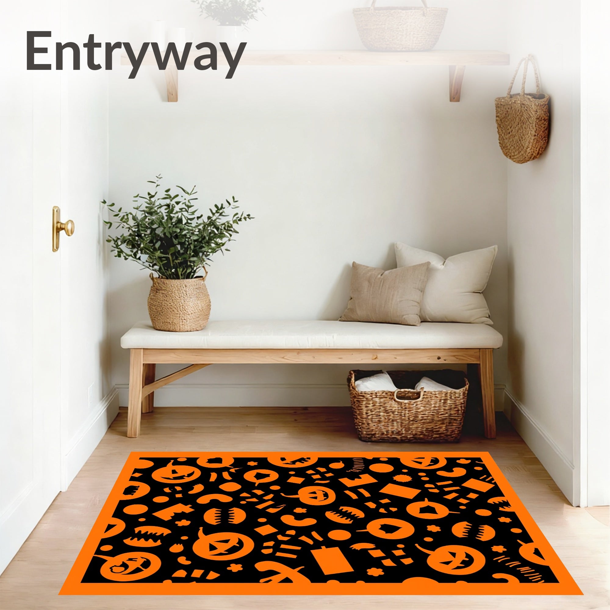 Flatwoven High Traffic Area Rug, Halloween Spooky, Non Slip, Stain Resistant, Washable Area Rugs for Living Room, Bedroom (Orange) Overview: