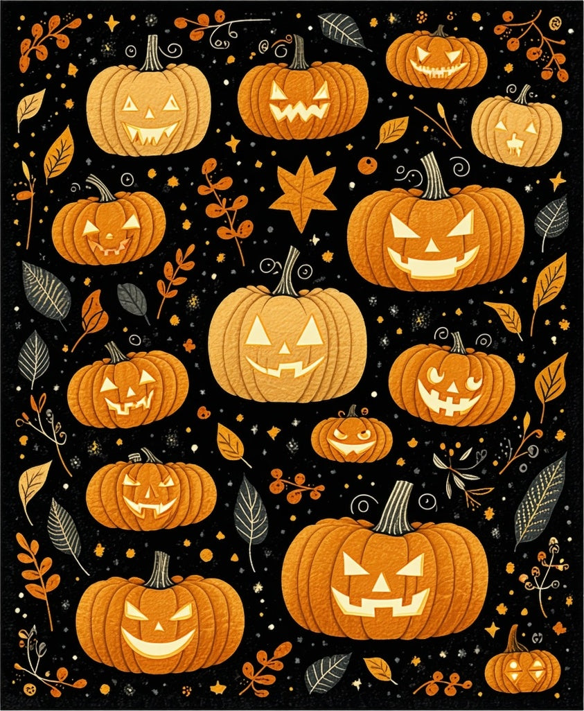 Halloween Themed Round with Stylized Pumpkin and Lettering Motifs(Orange)