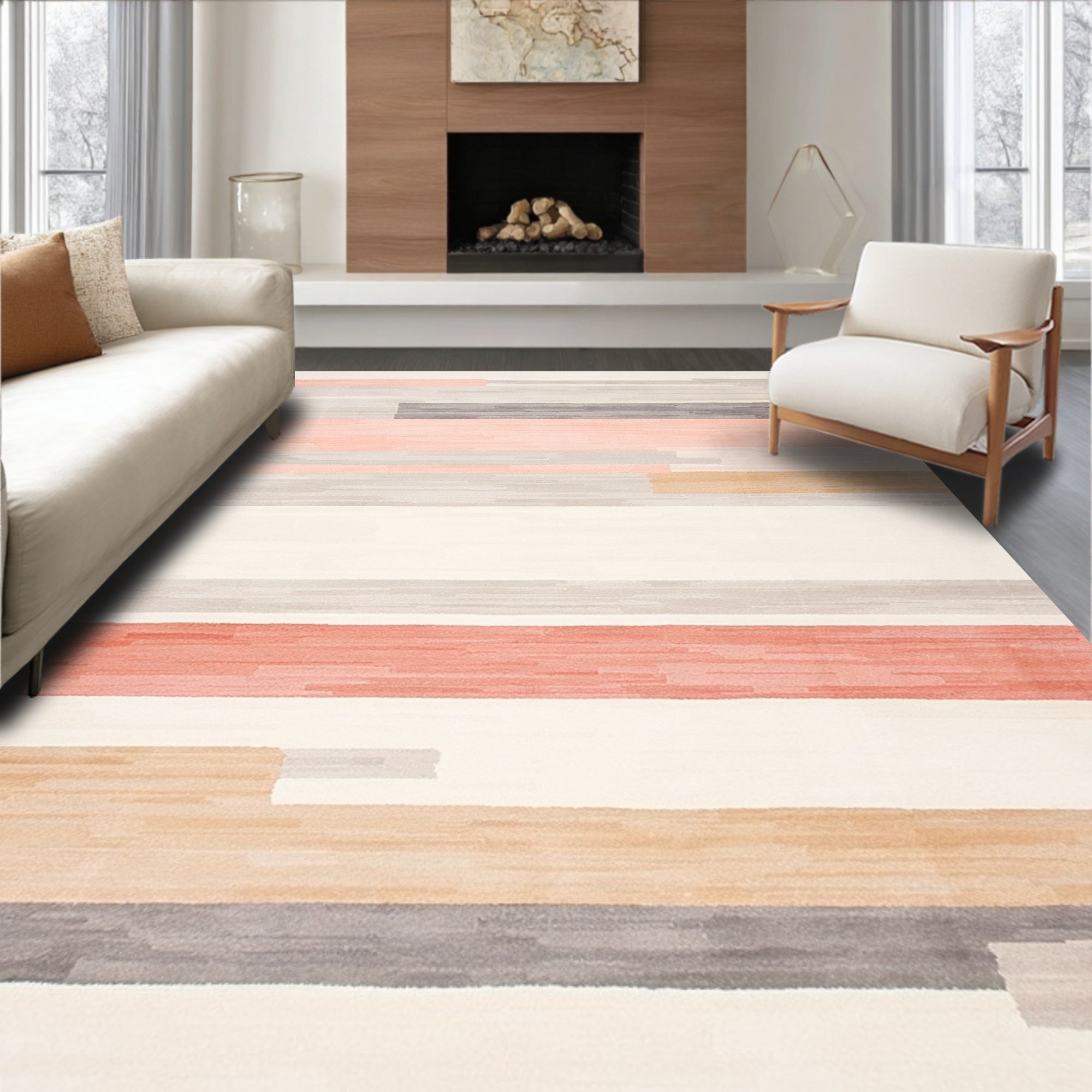 Ultra Soft Area Rug, Non Slip, Stain Resistant, Washable Area Rugs for Living Room, Bedroom, Hallway Runner Non Slip Beige Print Stripe(Beige) Overview: