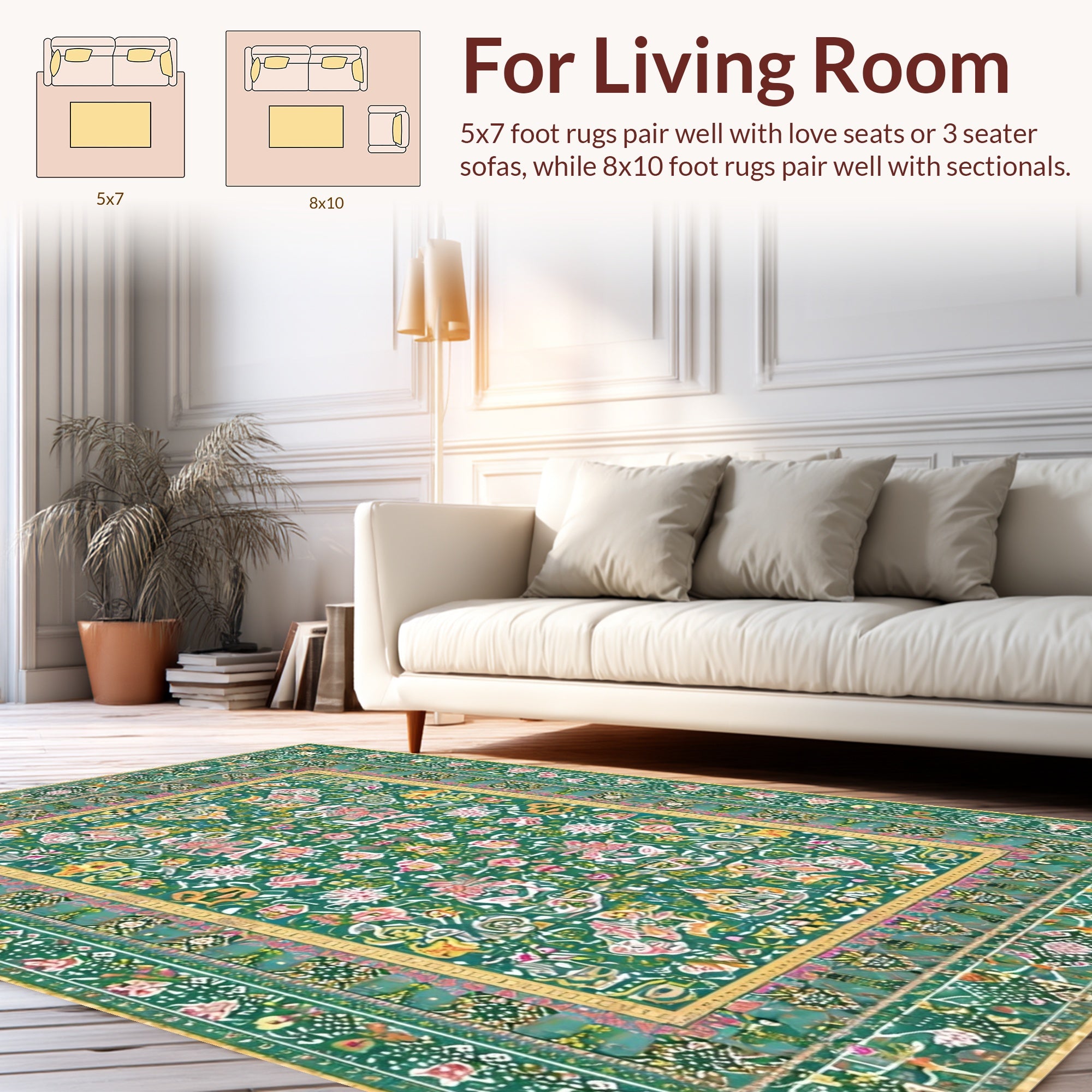 Ultra Soft Area Rug, Non Slip, Stain Resistant, Washable Area Rugs for Living Room, Bedroom, Hallway Runner, Seamless Pink Bow Design(Green) Overview: