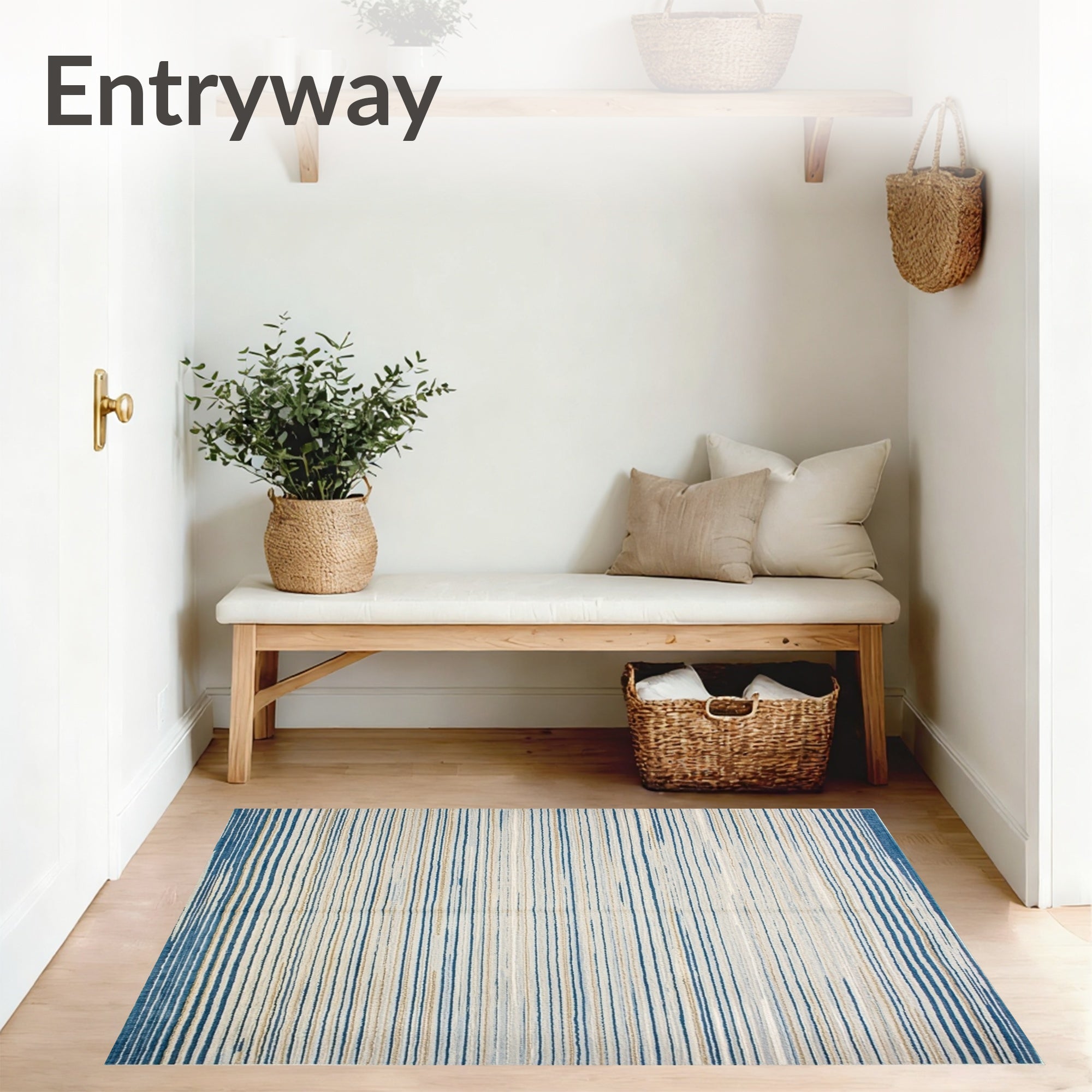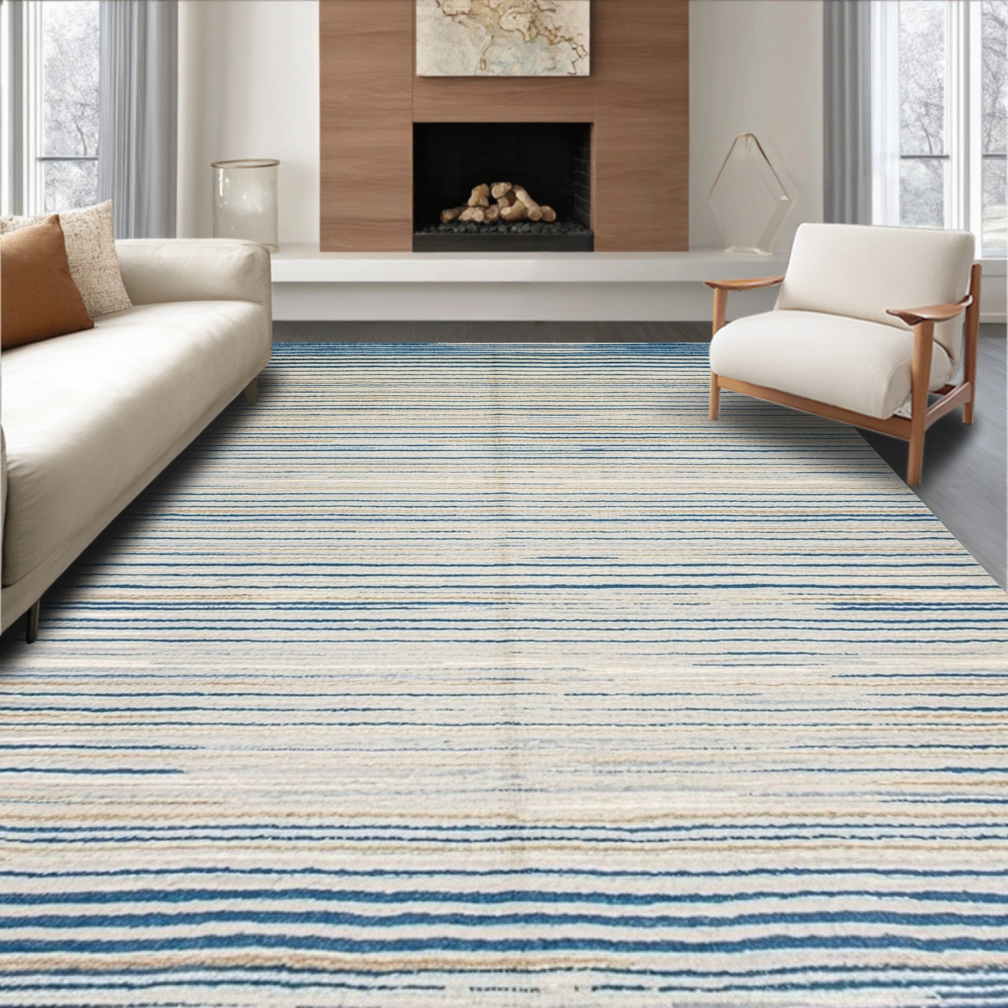 Ultra Soft Area Rug, Non Slip, Stain Resistant, Washable Area Rugs for Living Room, Bedroom, Handcrafted Loop Pile Featuring Subtle Beige and Blue Tones(Blue) Overview: