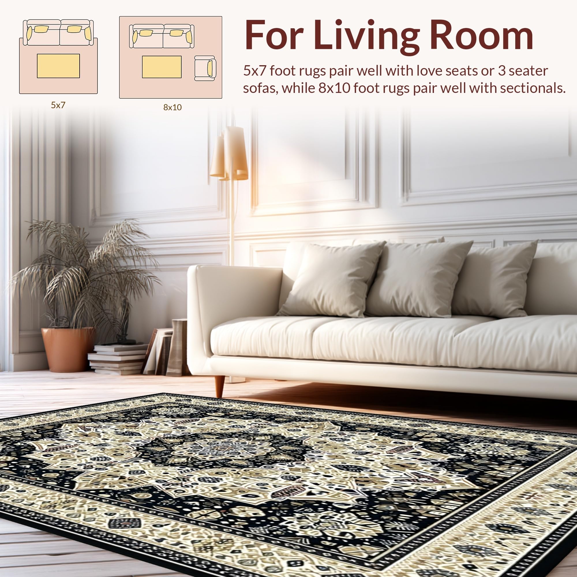 - Durable: Designed for the living room, your rug will be perfectly serviceable for long-term usage in any 'high-traffic' area. Enjoy the underfoot comfort without any shedding.