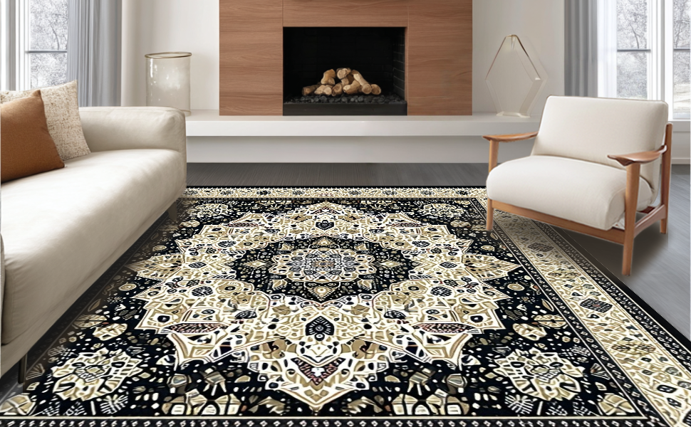 Ultra Soft Area Rug, Non Slip, Stain Resistant, Washable Area Rugs for Living Room, Bedroom, Handcrafted Natural Fiber Mandala(Beige) Overview: