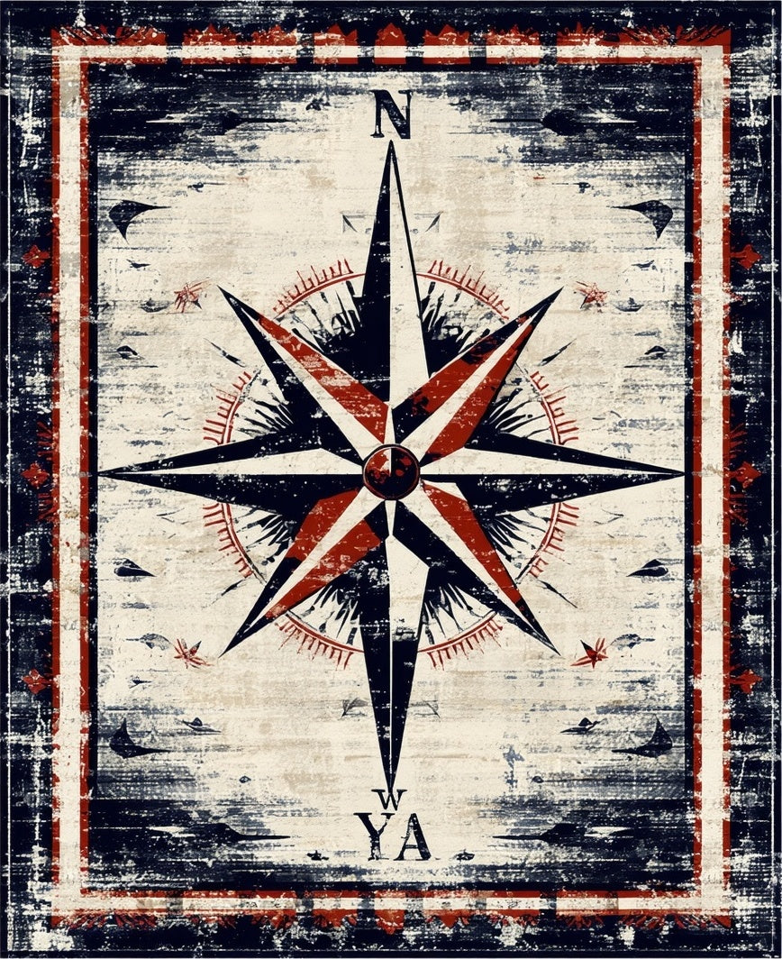 Ultra Soft Area Rug, Non Slip, Stain Resistant, Washable Area Rugs for Living Room, Bedroom, Harbor Master Nautical Star Indoor Transitional Area Rug for Deck(Brown) Overview: