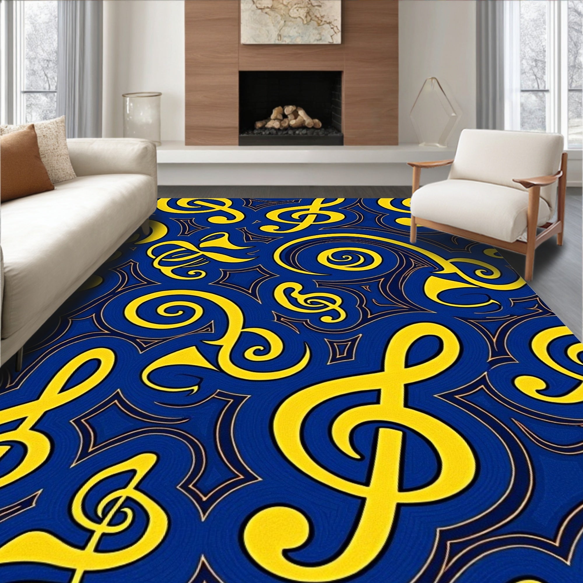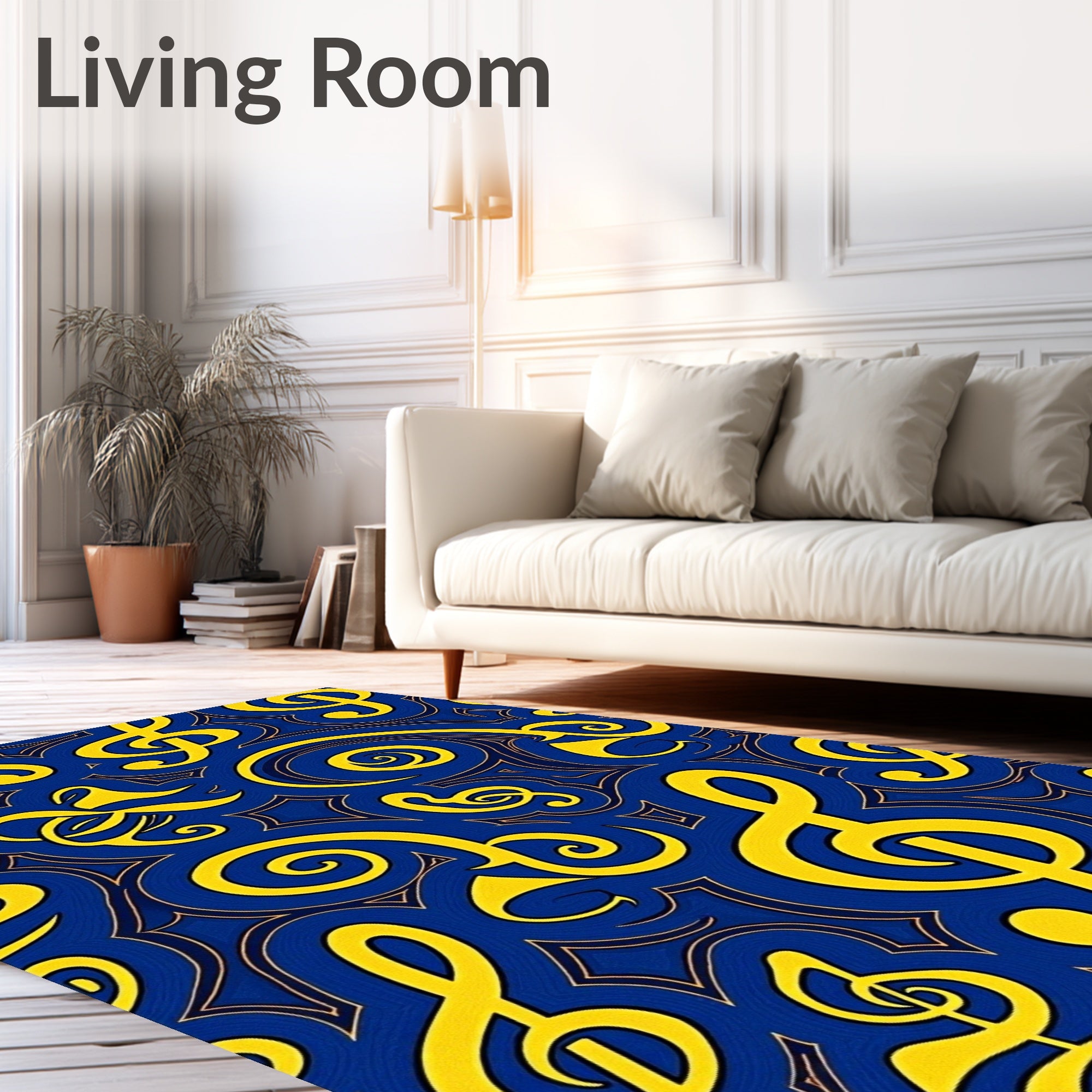Ultra Soft Area Rug, Non Slip, Stain Resistant, Washable Area Rugs for Living Room, Bedroom, Harmonious Treble Clef Artistic Dance Floor Accent(Blue) Overview: