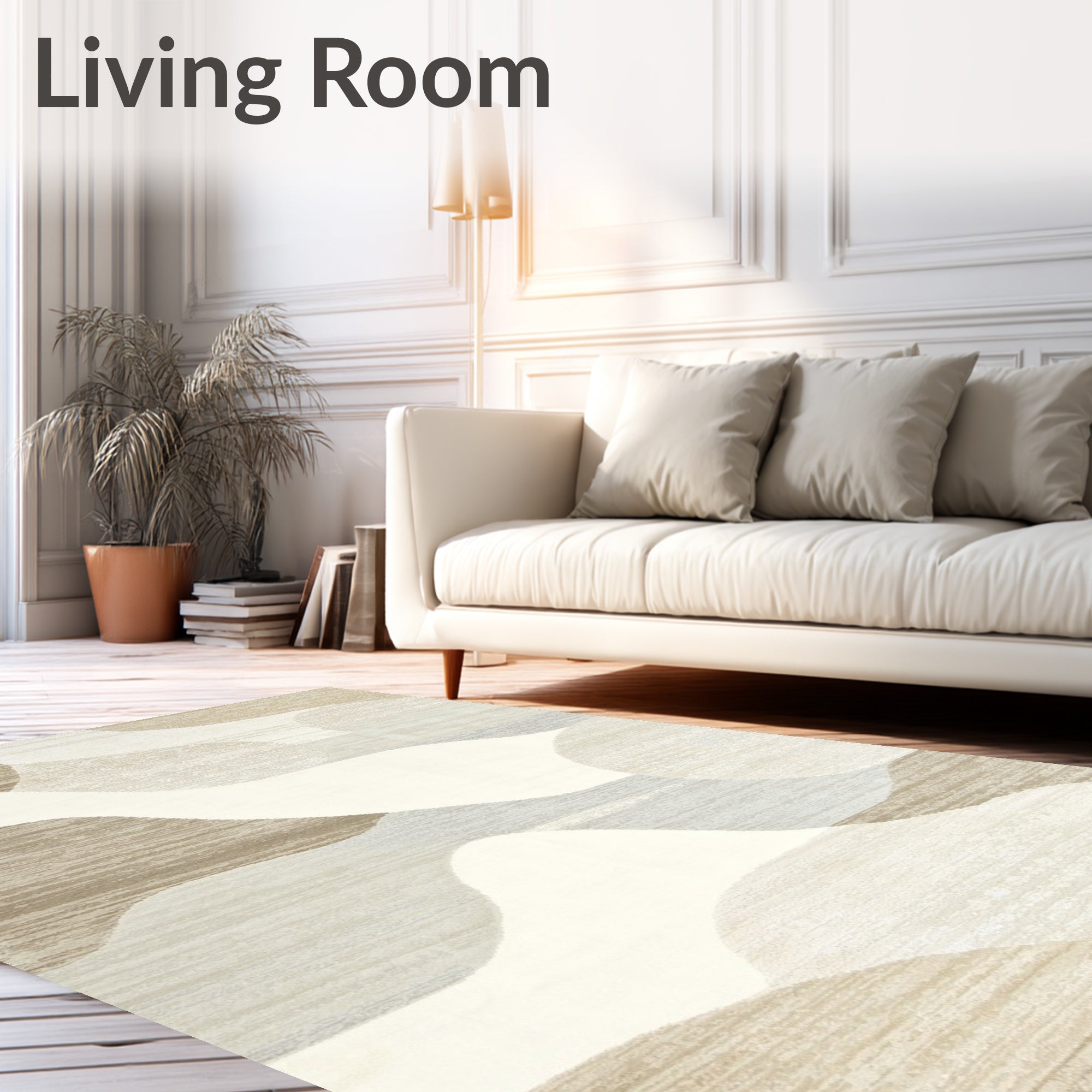 Ultra Soft Area Rug, Non Slip, Stain Resistant, Washable Area Rugs for Living Room, Bedroom, Harmony Haven Beige Abstract Area with Sophisticated Design(Beige) Overview: