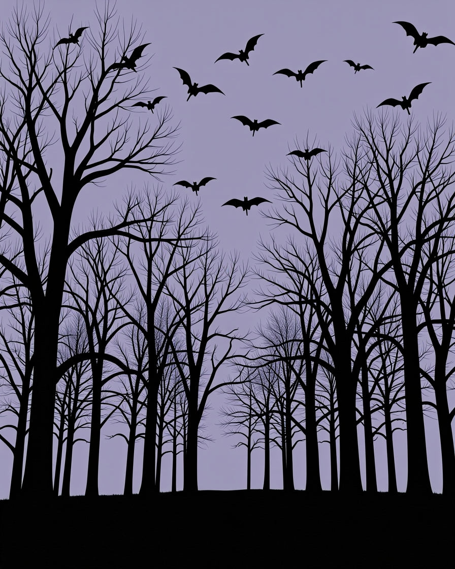 Haunted Forest with Shadowy Bats and Gnarled Trees(Purple)