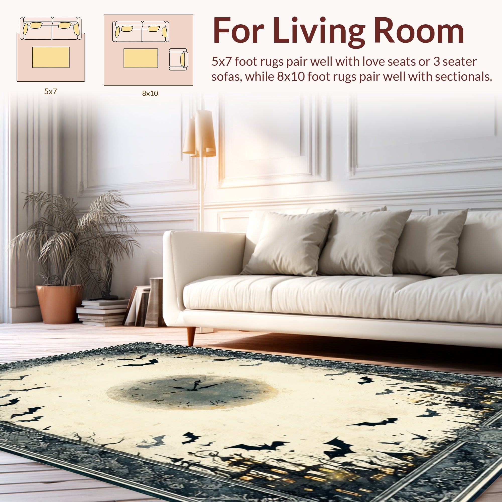 Ultra Soft Area Rug, Non Slip, Stain Resistant, Washable Area Rugs for Living Room, Bedroom, Haunted Manor Rug - Eerie Victorian Gothic Decor with Spectral Designs(Gray) Overview: