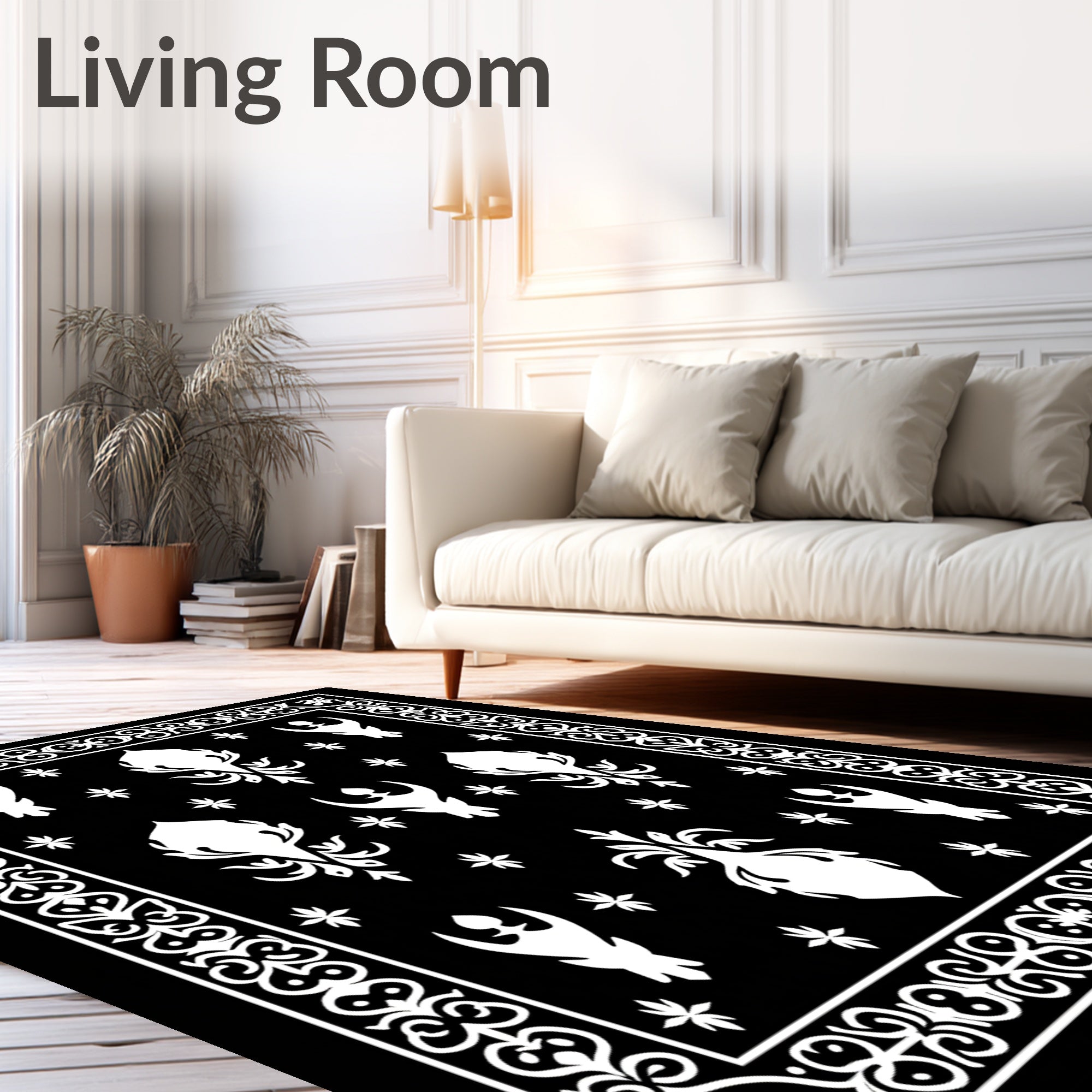 Ultra Soft Area Rug, Non Slip, Stain Resistant, Washable Area Rugs for Living Room, Bedroom, Haunted Mansion Entrance Featuring Eerie Spirit Motifs(Black) Overview: