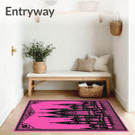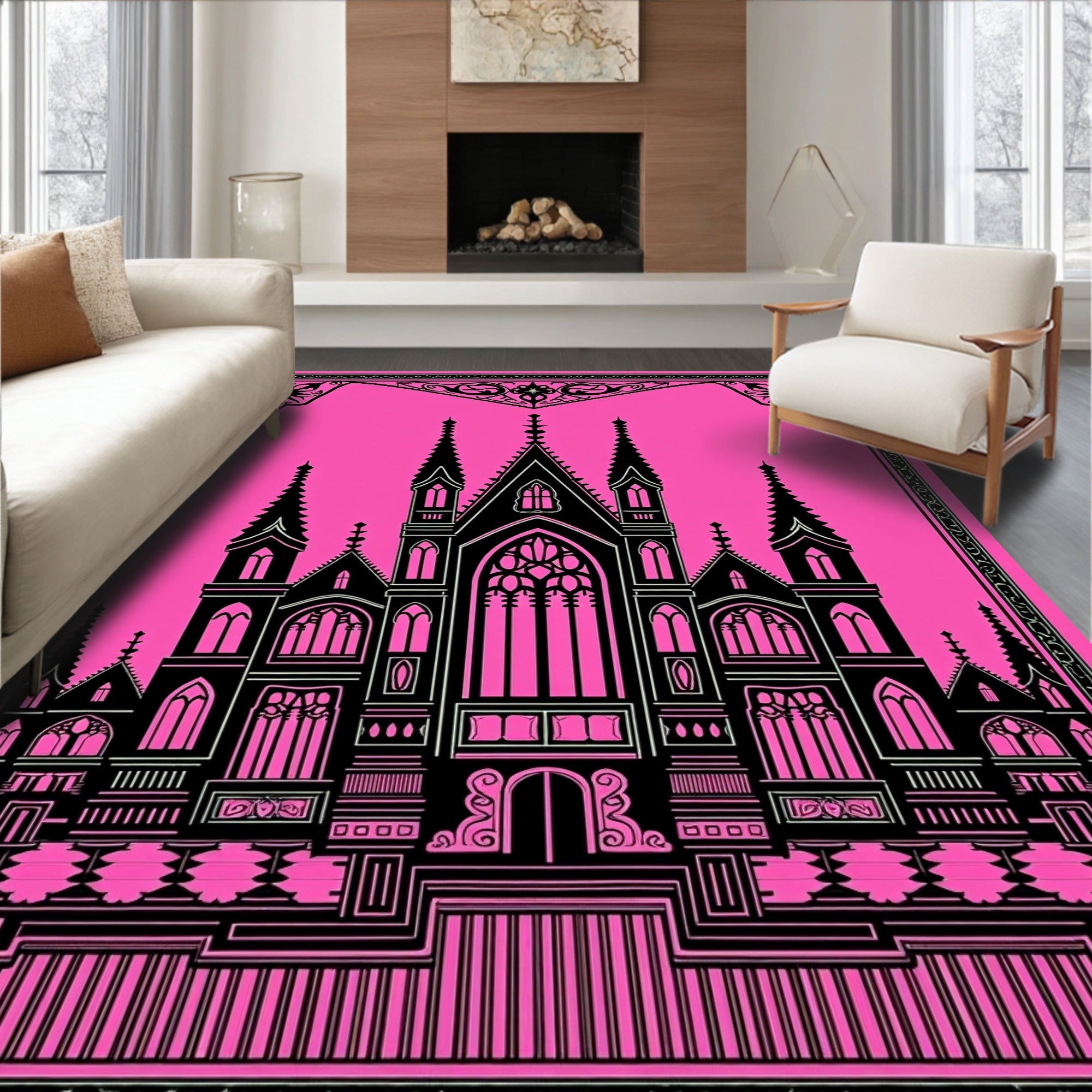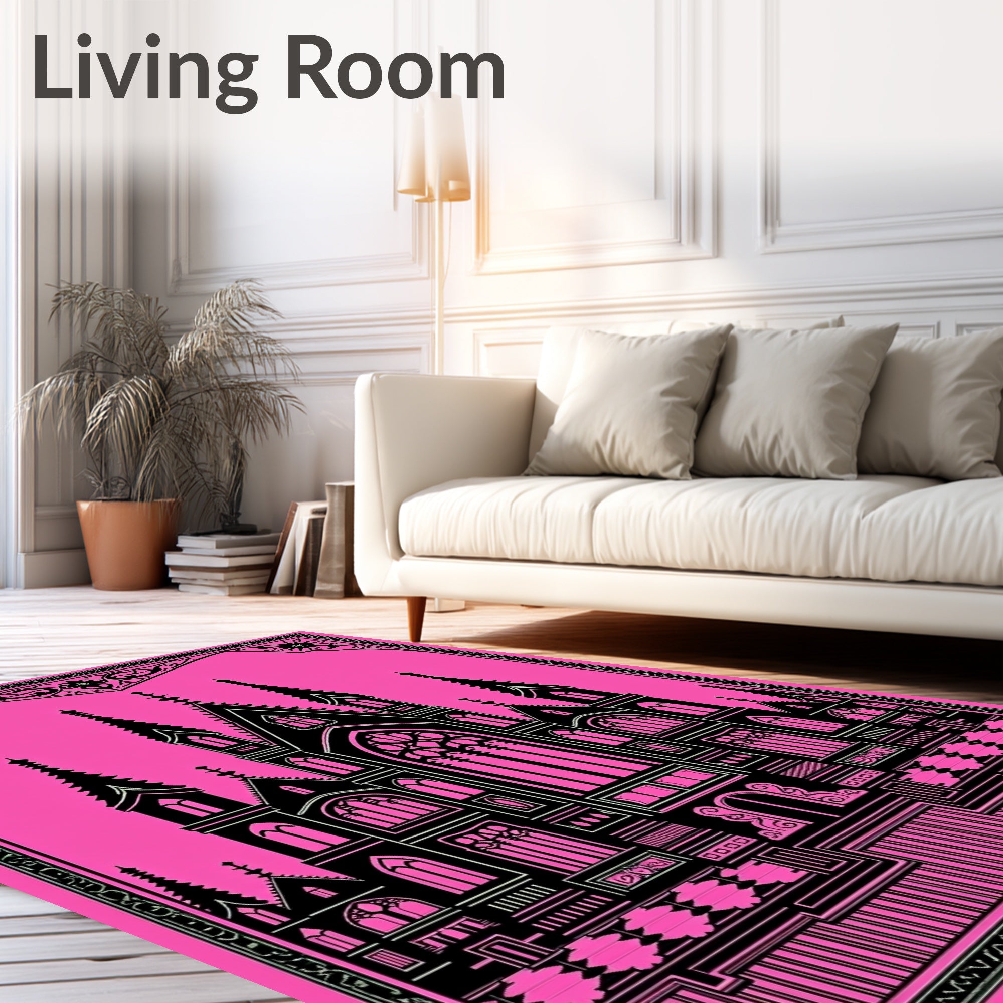 Ultra Soft Area Rug, Non Slip, Stain Resistant, Washable Area Rugs for Living Room, Bedroom, Haunted Mansion Gothic Architecture Decorative(Pink) Overview: