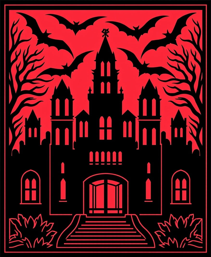 Haunted Mansion Vintage Spooky Nightscape(Red)