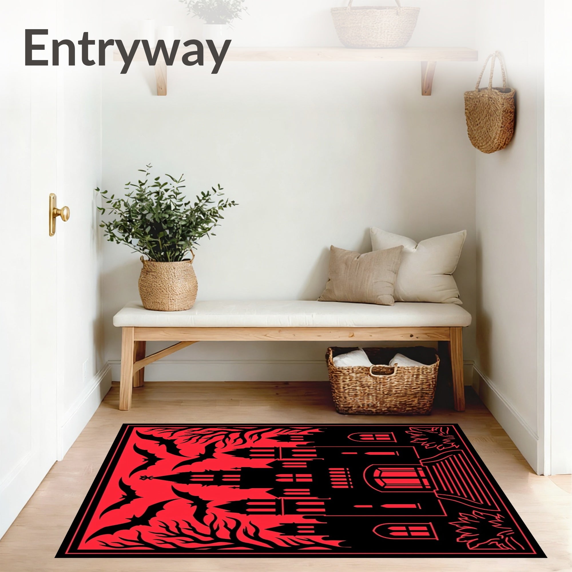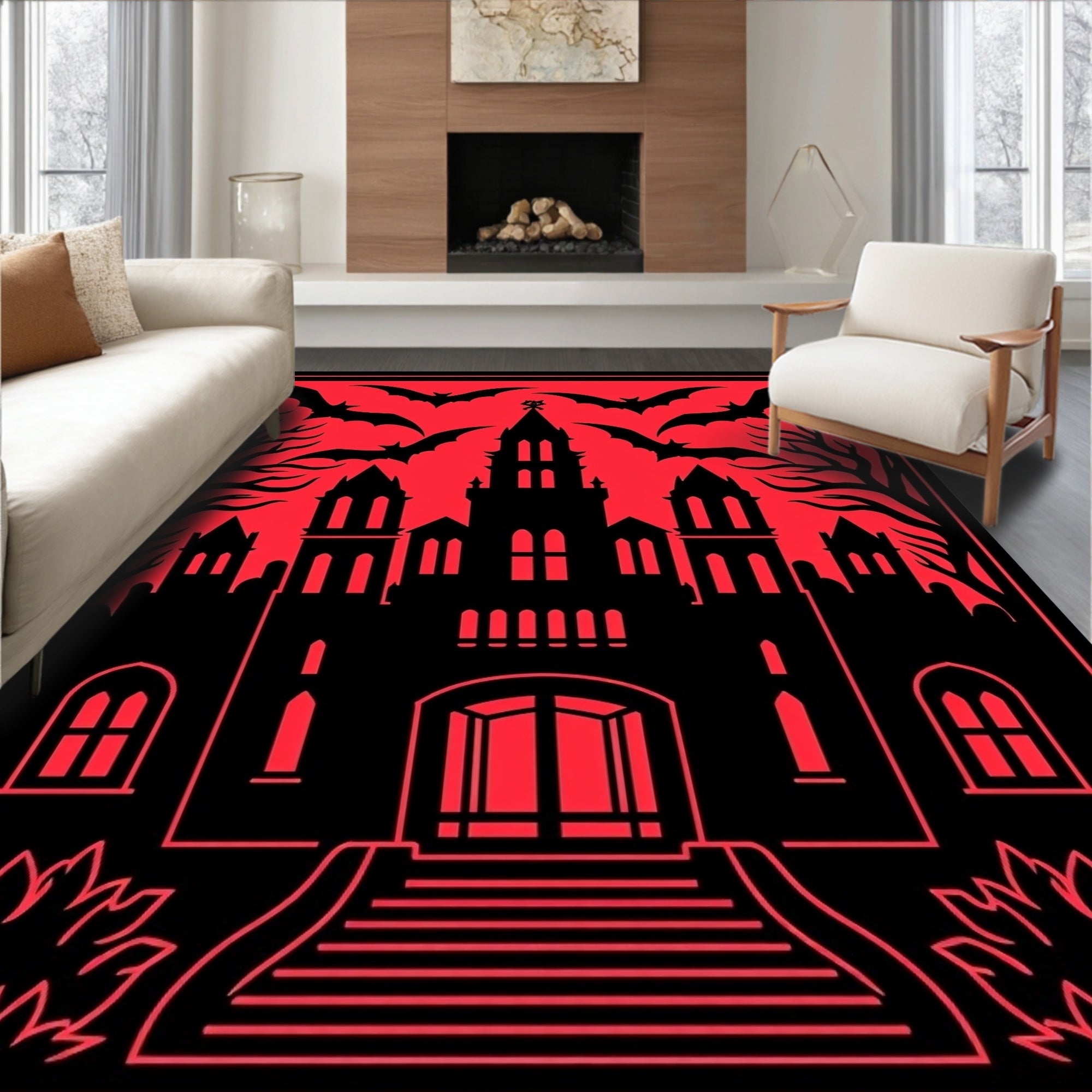 Ultra Soft Area Rug, Non Slip, Stain Resistant, Washable Area Rugs for Living Room, Bedroom, Haunted Mansion Vintage Spooky Nightscape(Red) Overview: