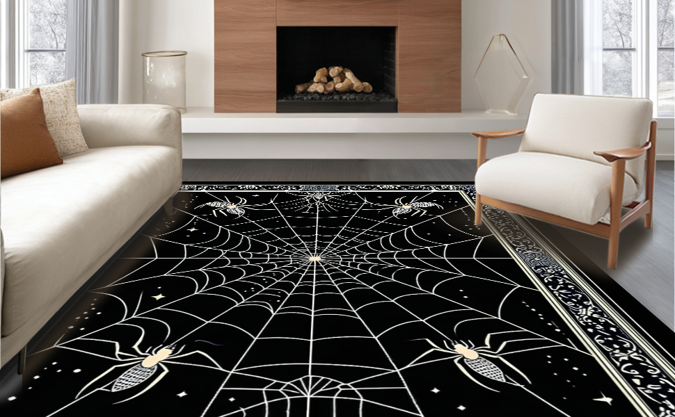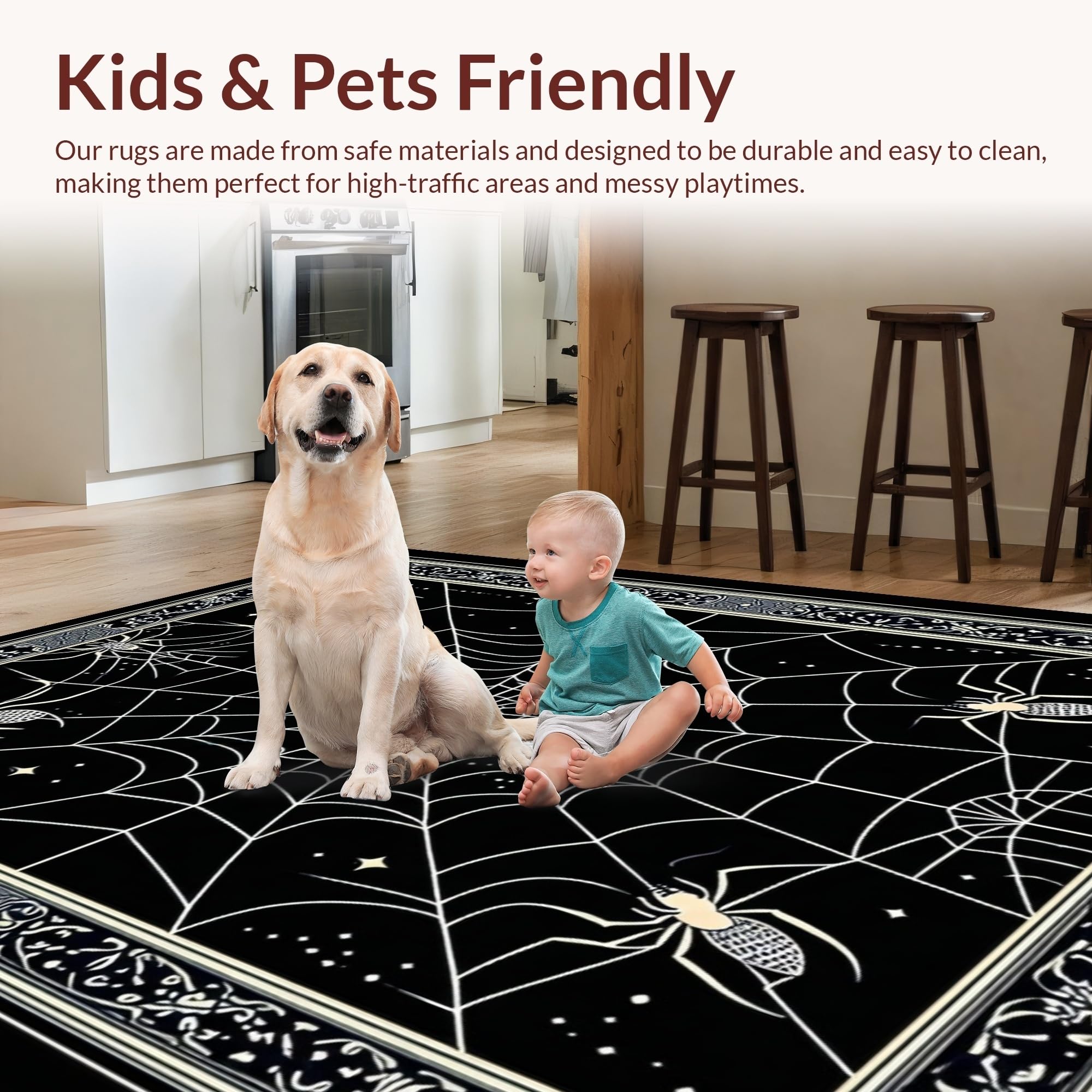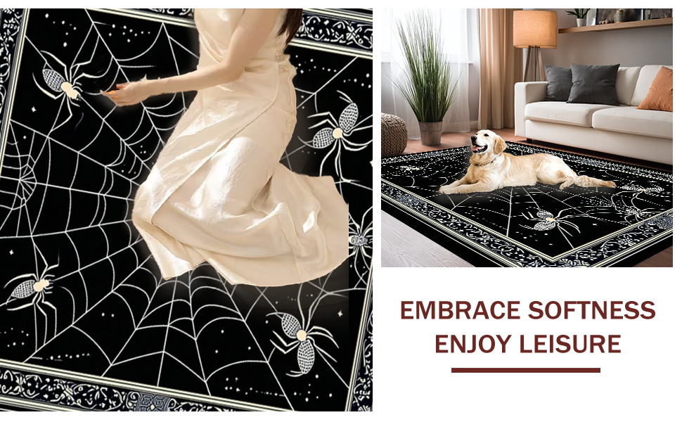 Ultra Soft Area Rug, Non Slip, Stain Resistant, Washable Area Rugs for Living Room, Bedroom, Haunting Elegant Lattice Design(Black) Overview: