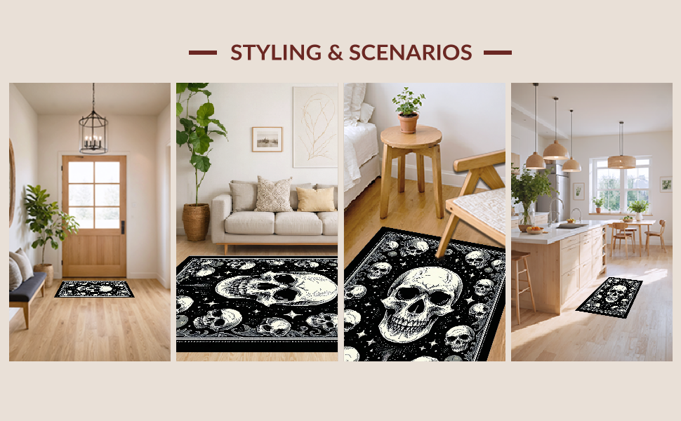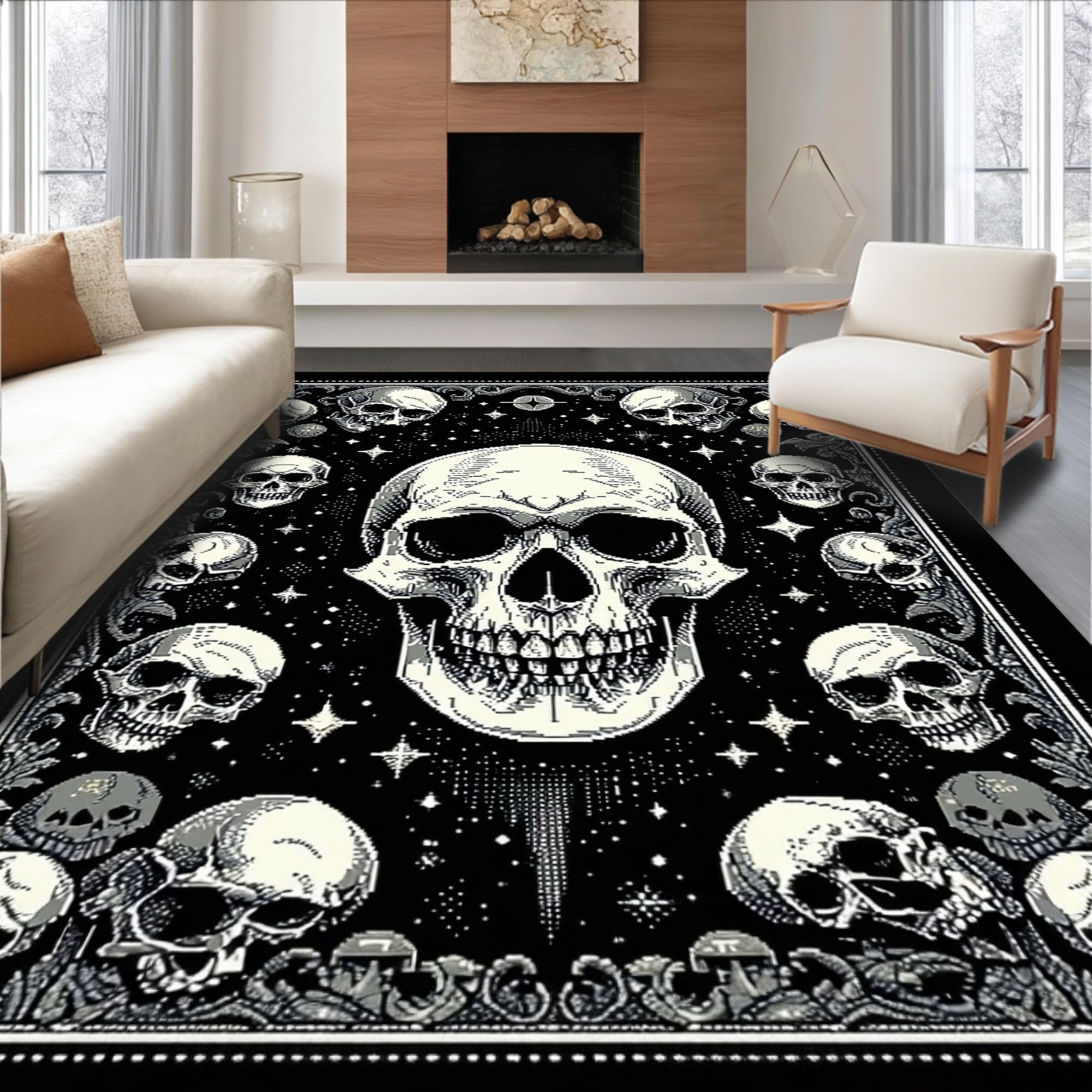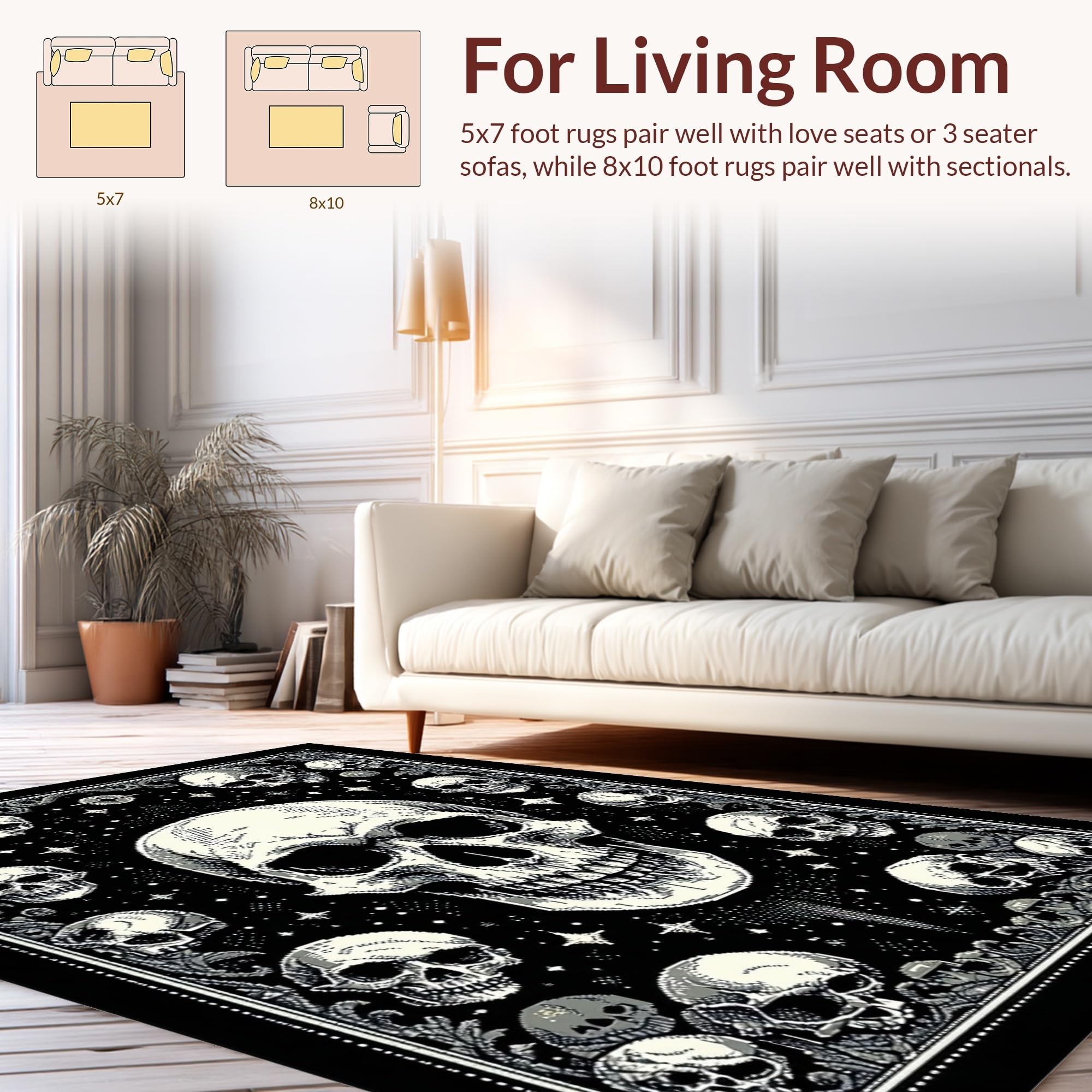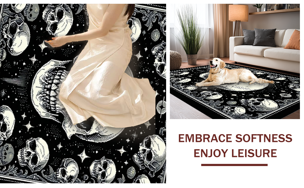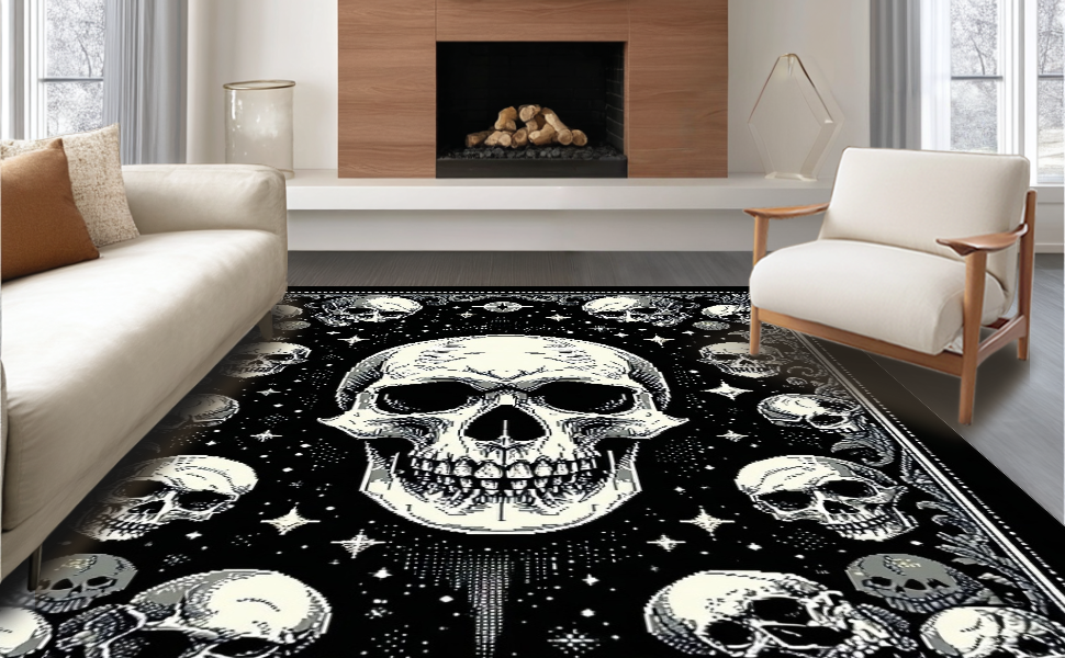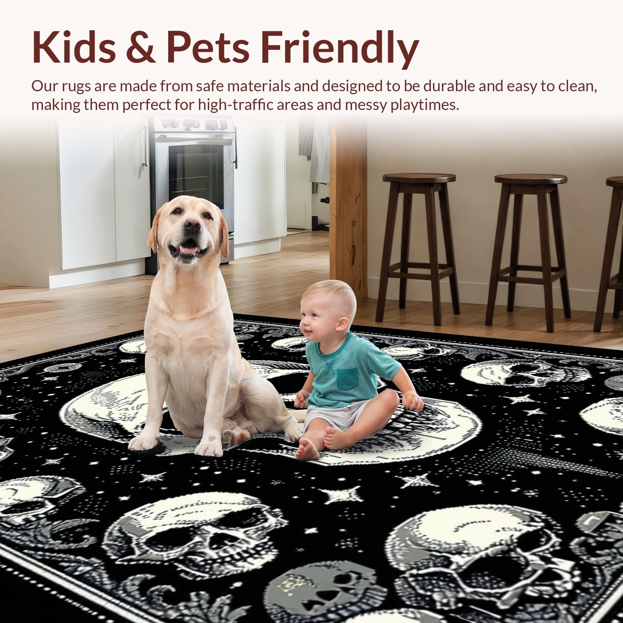 Ultra Soft Area Rug, Non Slip, Stain Resistant, Washable Area Rugs for Living Room, Bedroom, Haunting Gray Ornamental Design(Black) Overview: