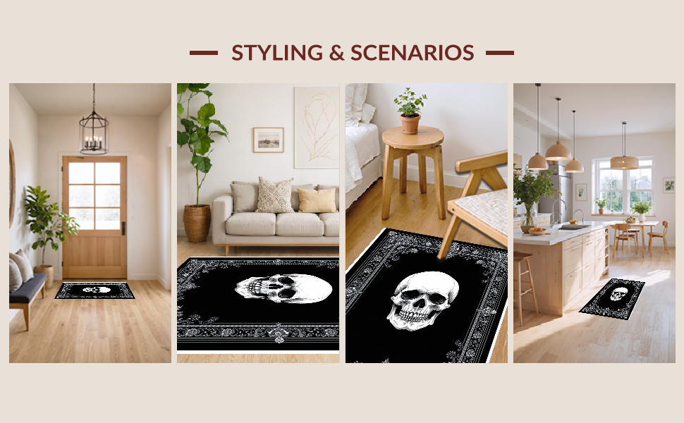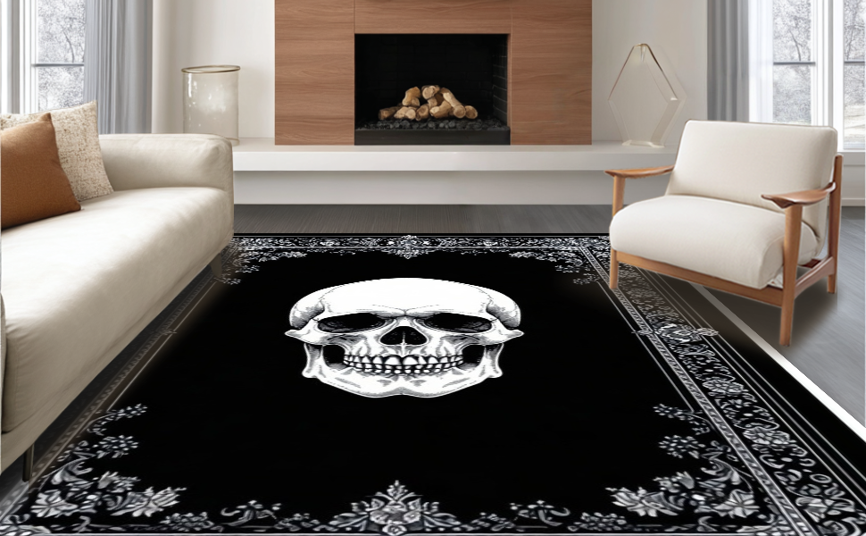 Ultra Soft Area Rug, Non Slip, Stain Resistant, Washable Area Rugs for Living Room, Bedroom, Hauntingly Artistic Gothic Composition(Black) Overview: