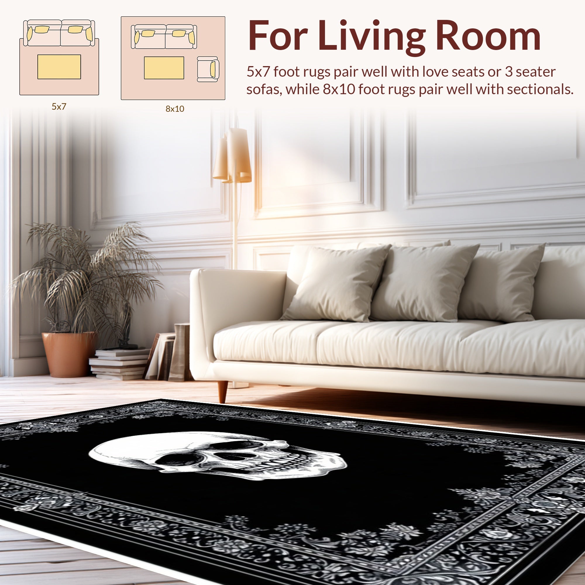 Flatwoven High Traffic Area Rug, Hauntingly Artistic Gothic Composition, Non Slip, Stain Resistant, Washable Area Rugs for Living Room, Bedroom (Black) Overview: