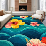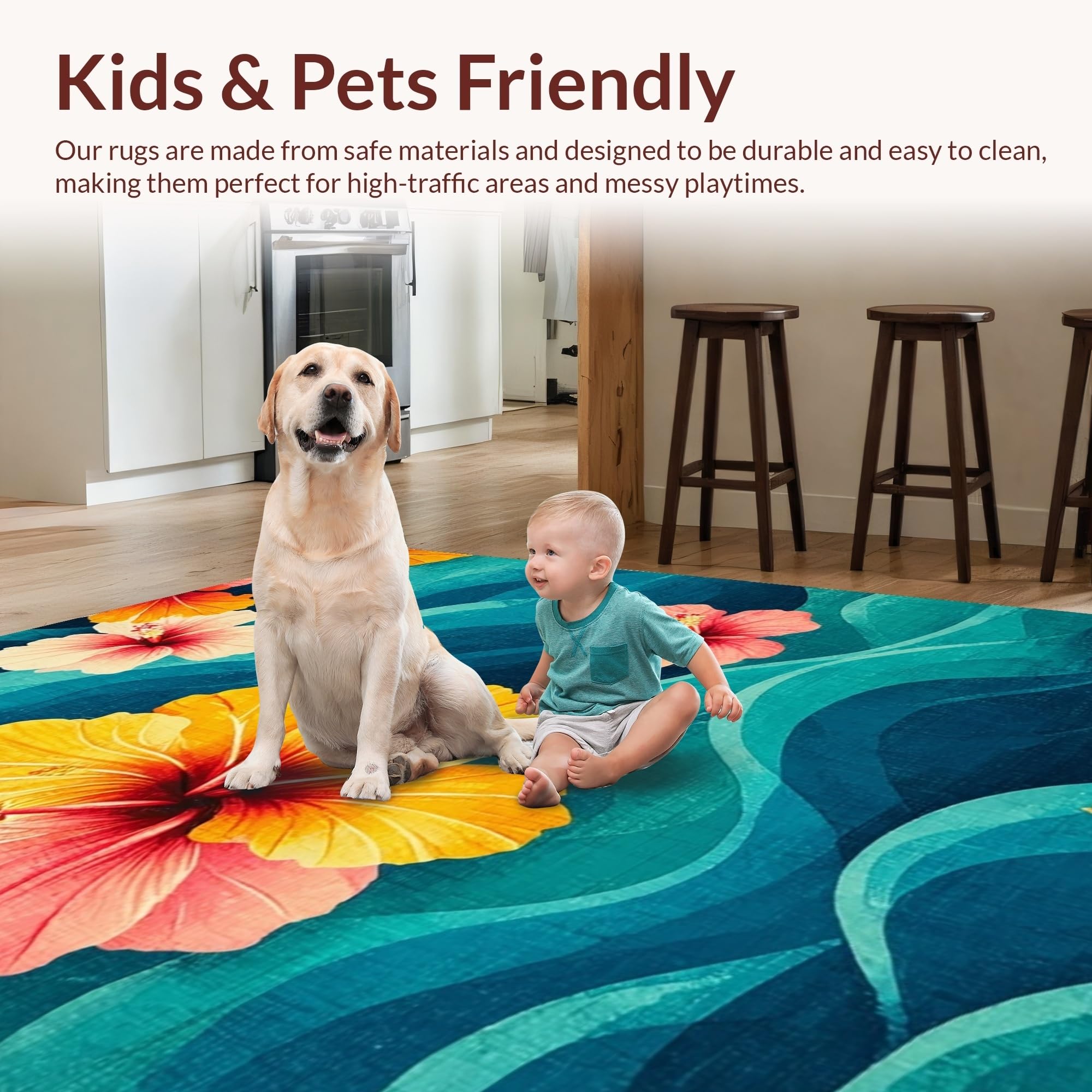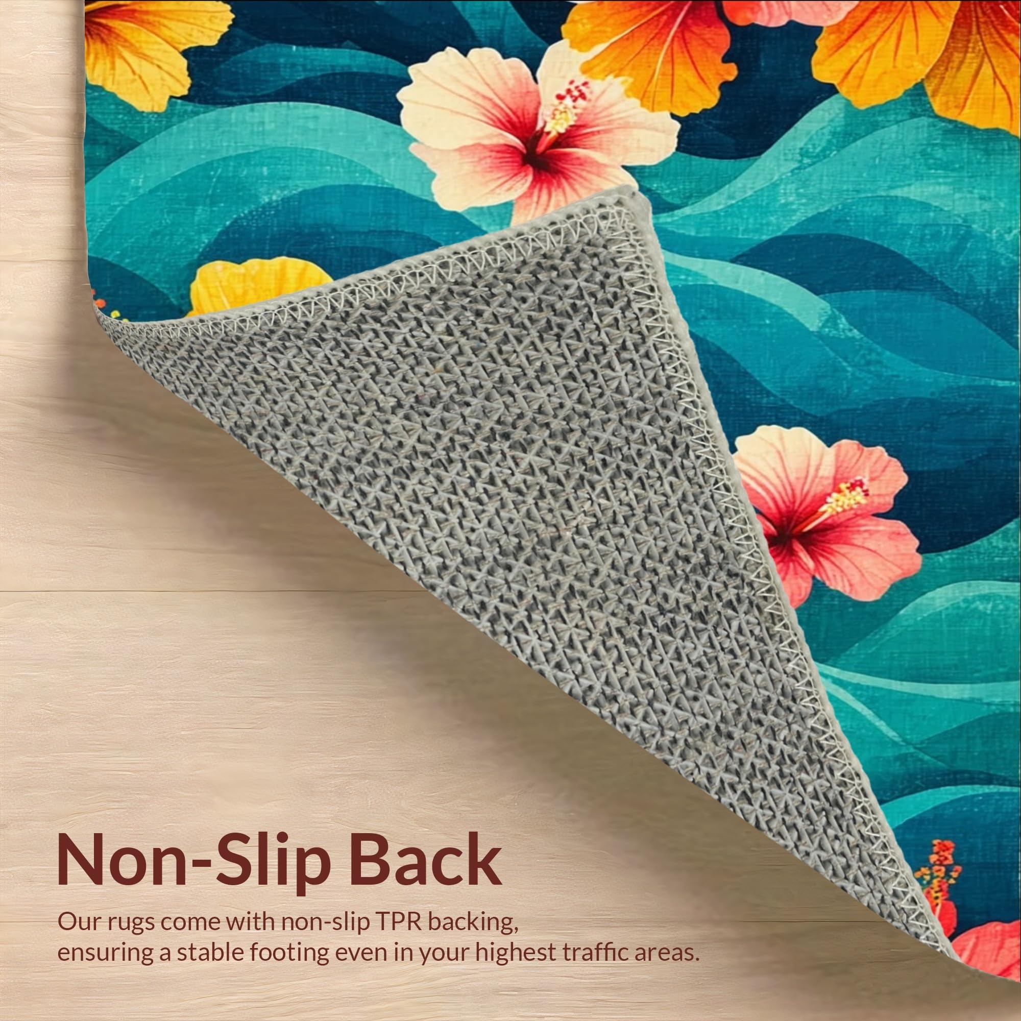 Ultra Soft Area Rug, Non Slip, Stain Resistant, Washable Area Rugs for Living Room, Bedroom, Hawaiian Inspired Surfboard Printed Rug Tropical Beach Themed Floor Mat(Blue) Overview: