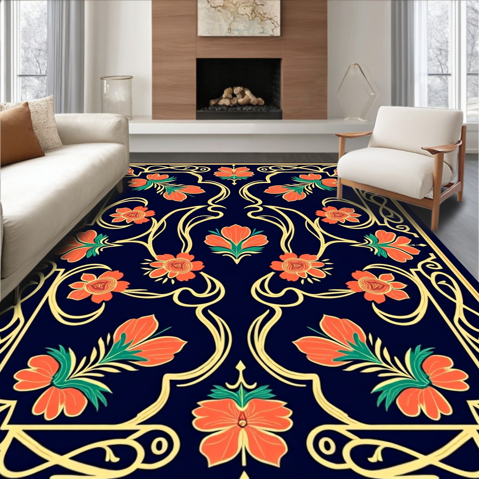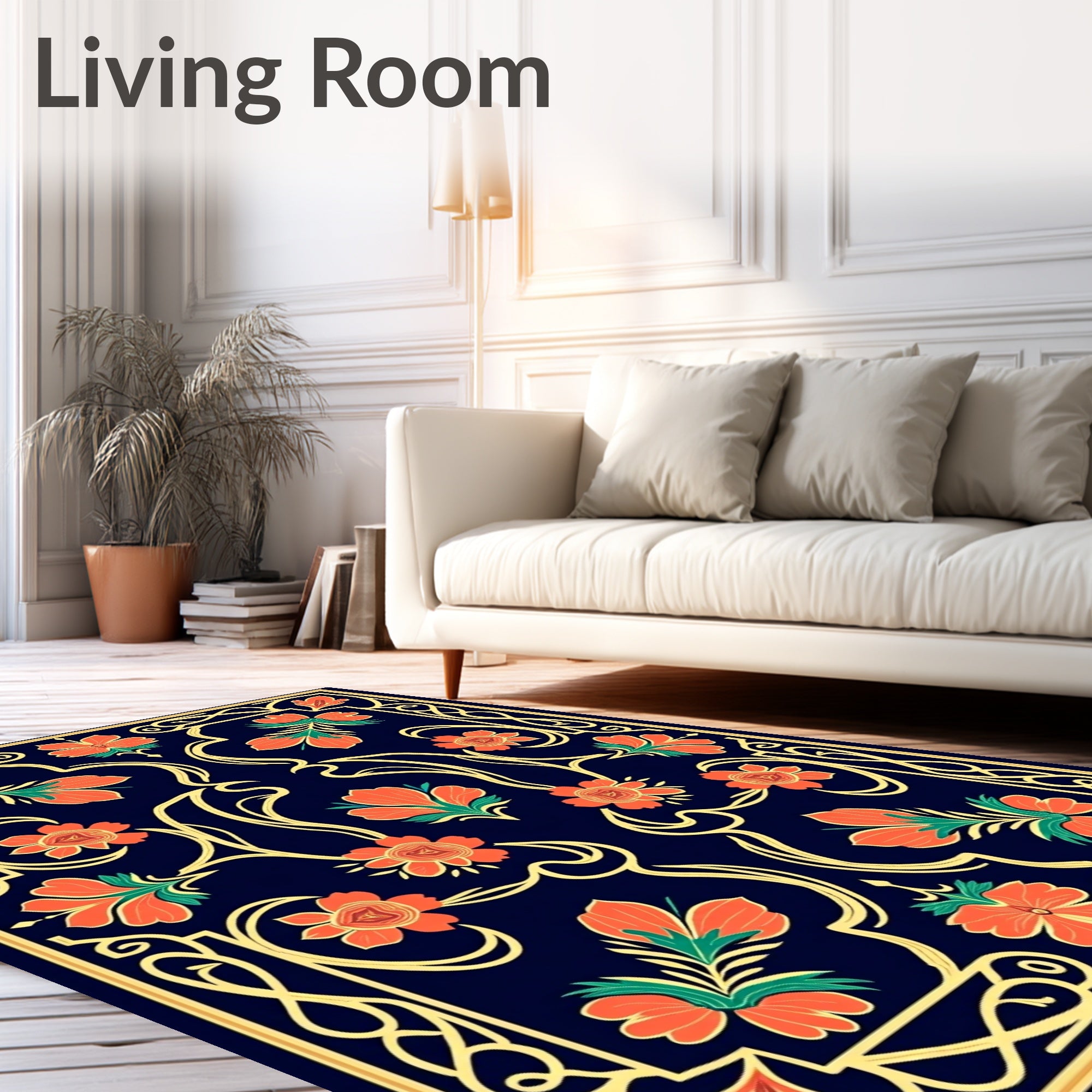 Ultra Soft Area Rug, Non Slip, Stain Resistant, Washable Area Rugs for Living Room, Bedroom, Heirloom Botanical Symphony Artful Collection(Orange) Overview: