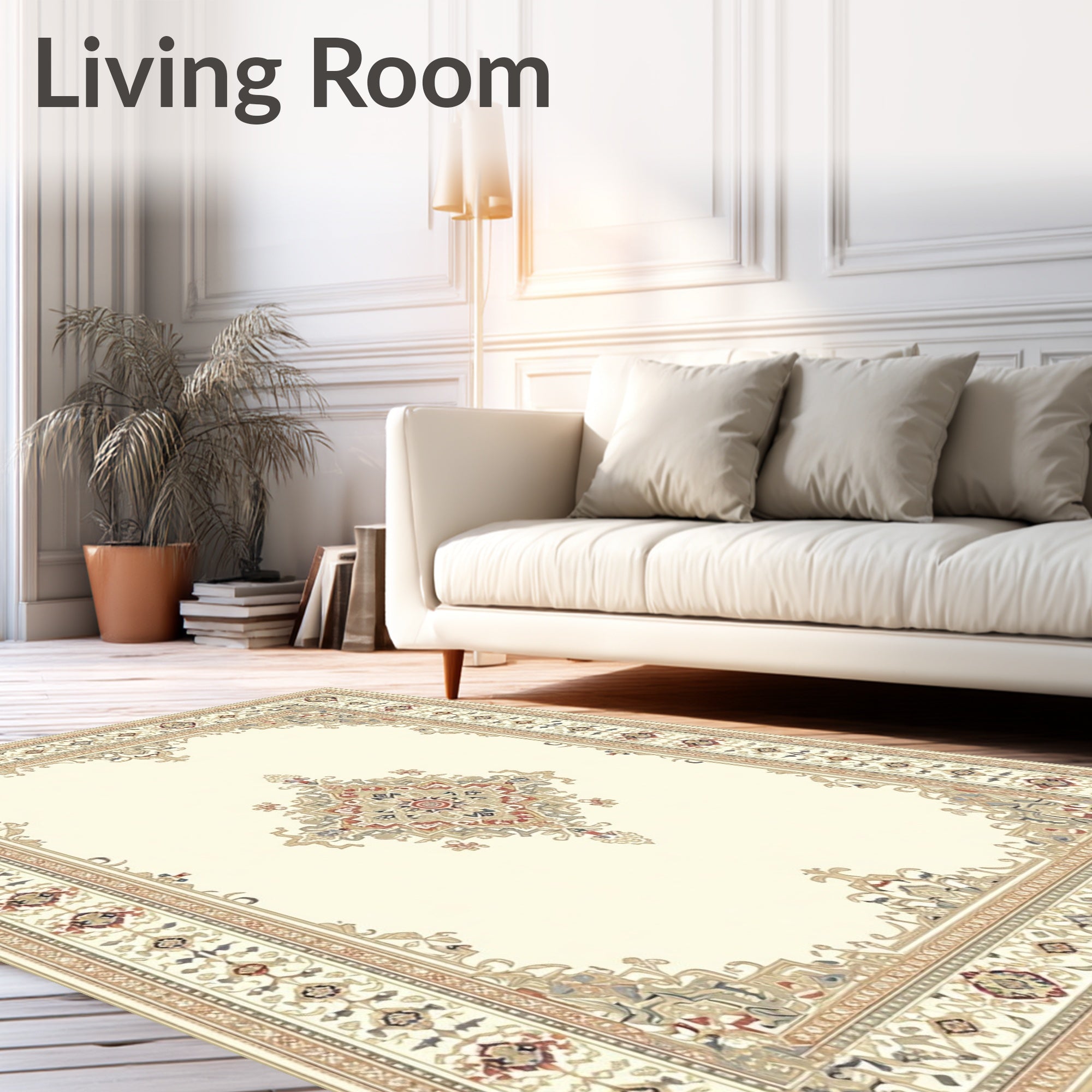 Ultra Soft Area Rug, Non Slip, Stain Resistant, Washable Area Rugs for Living Room, Bedroom, Heirloom Inspired Medallion Area with an Ornate Centerpiece Design(Beige) Overview: