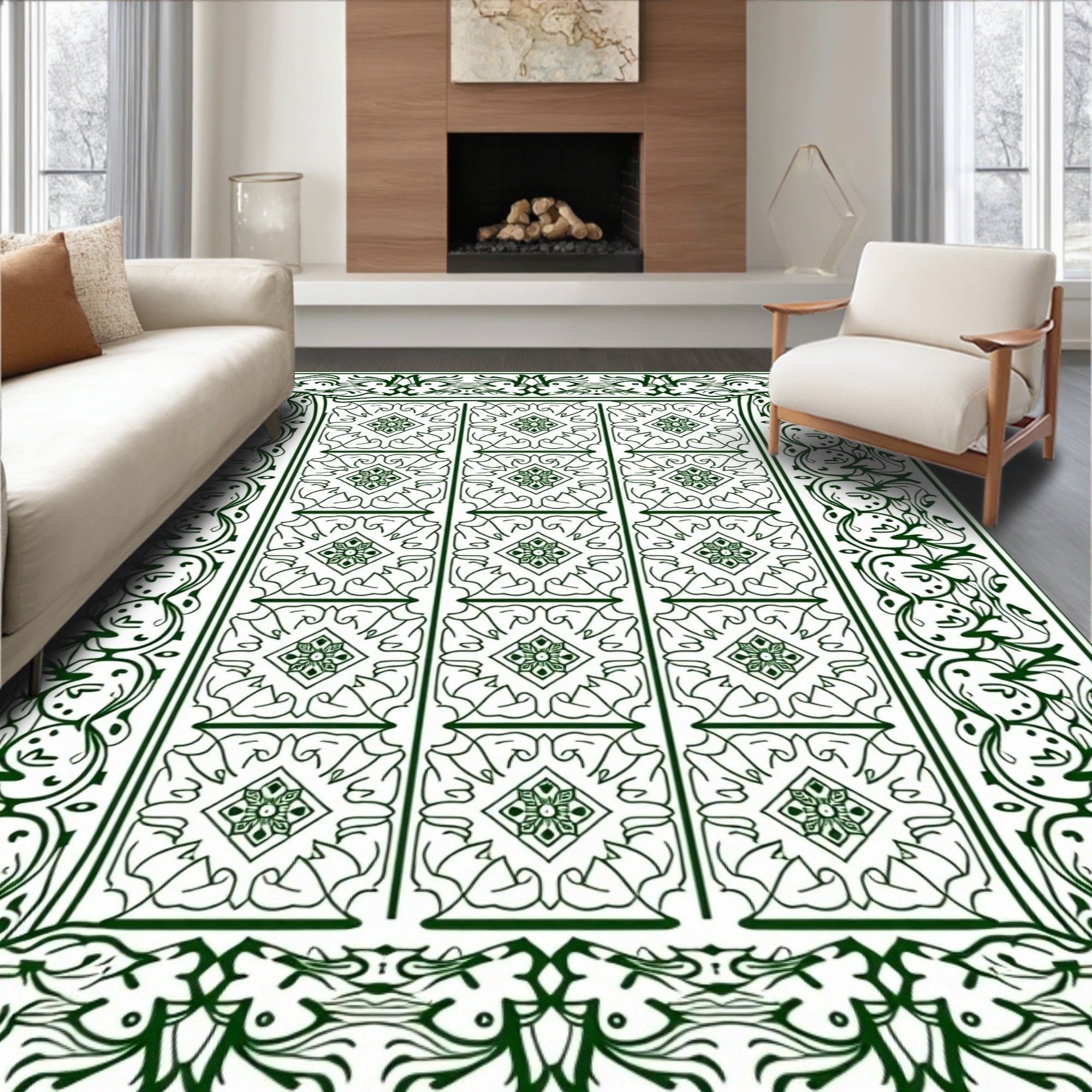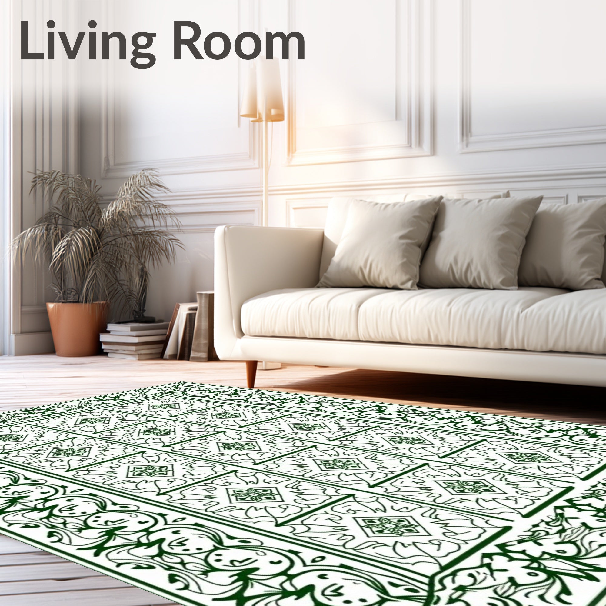 Ultra Soft Area Rug, Non Slip, Stain Resistant, Washable Area Rugs for Living Room, Bedroom, Heirloom Trellis Arabesque Jewel Embellished Framework(Green) Overview: