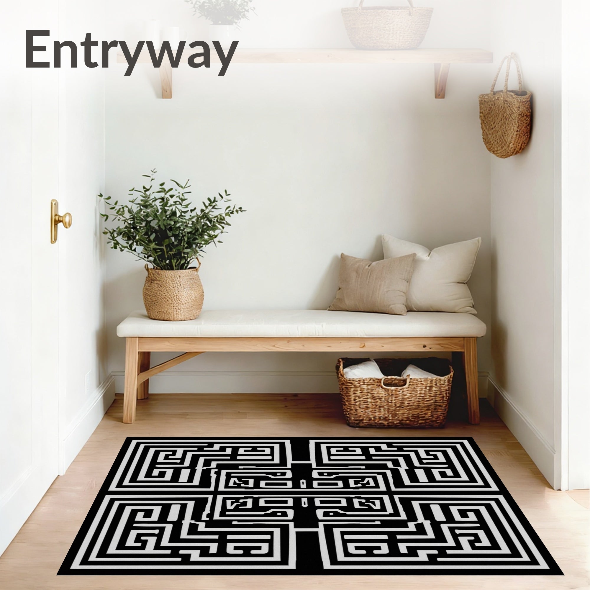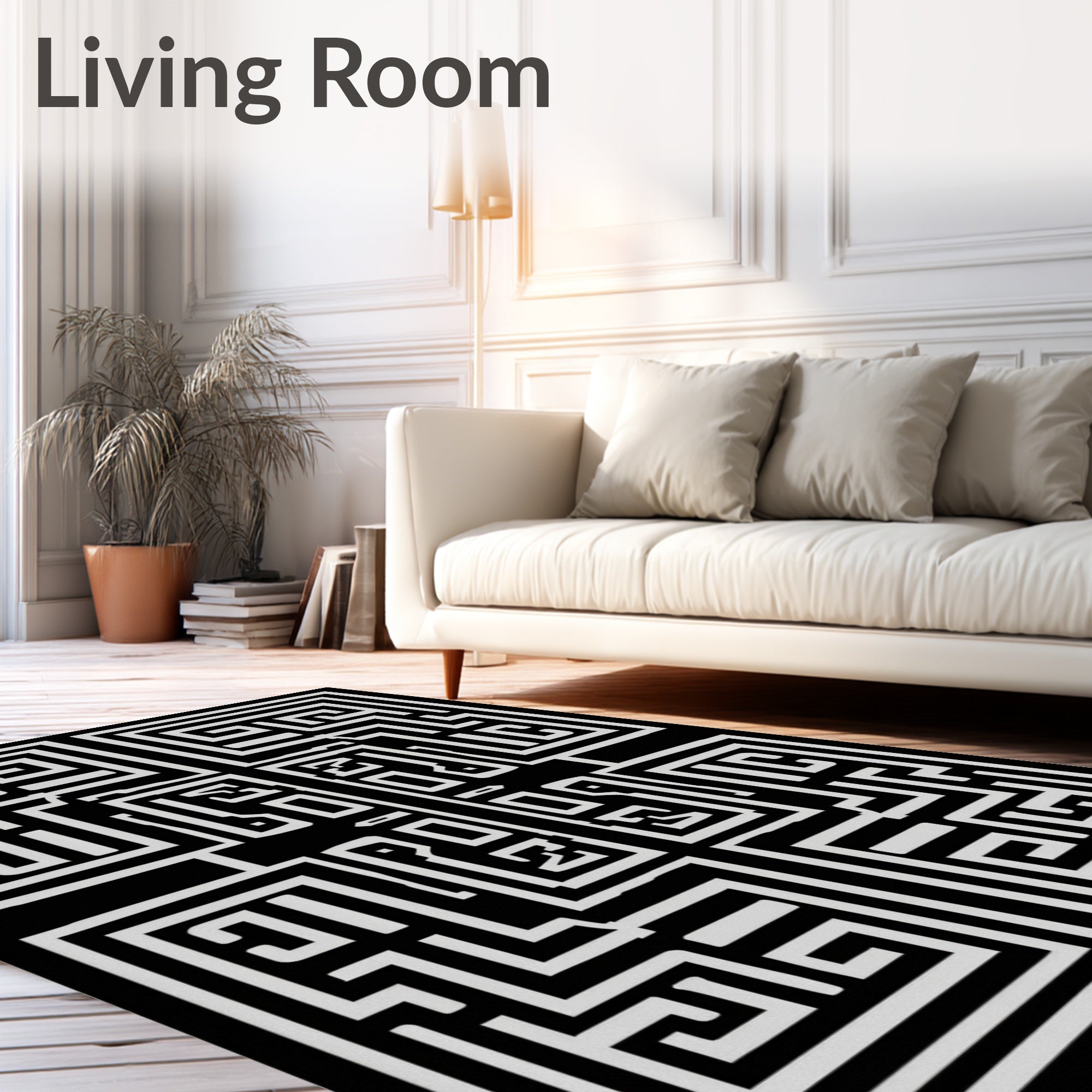 Ultra Soft Area Rug, Non Slip, Stain Resistant, Washable Area Rugs for Living Room, Bedroom, Hellenic Labyrinth Maze(Black) Overview:
