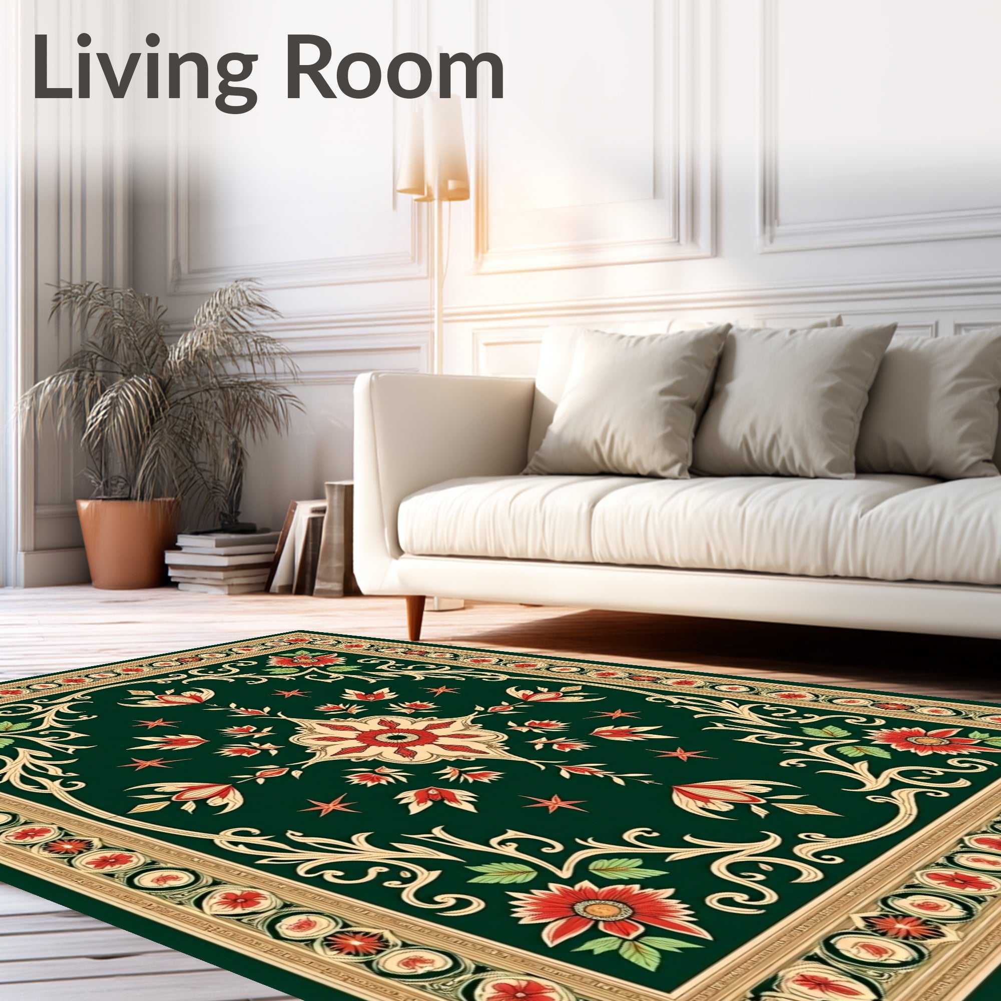 Ultra Soft Area Rug, Non Slip, Stain Resistant, Washable Area Rugs for Living Room, Bedroom, Heritage Artisan Botanical Tapestry Elegant Craftsmanship(Green) Overview: