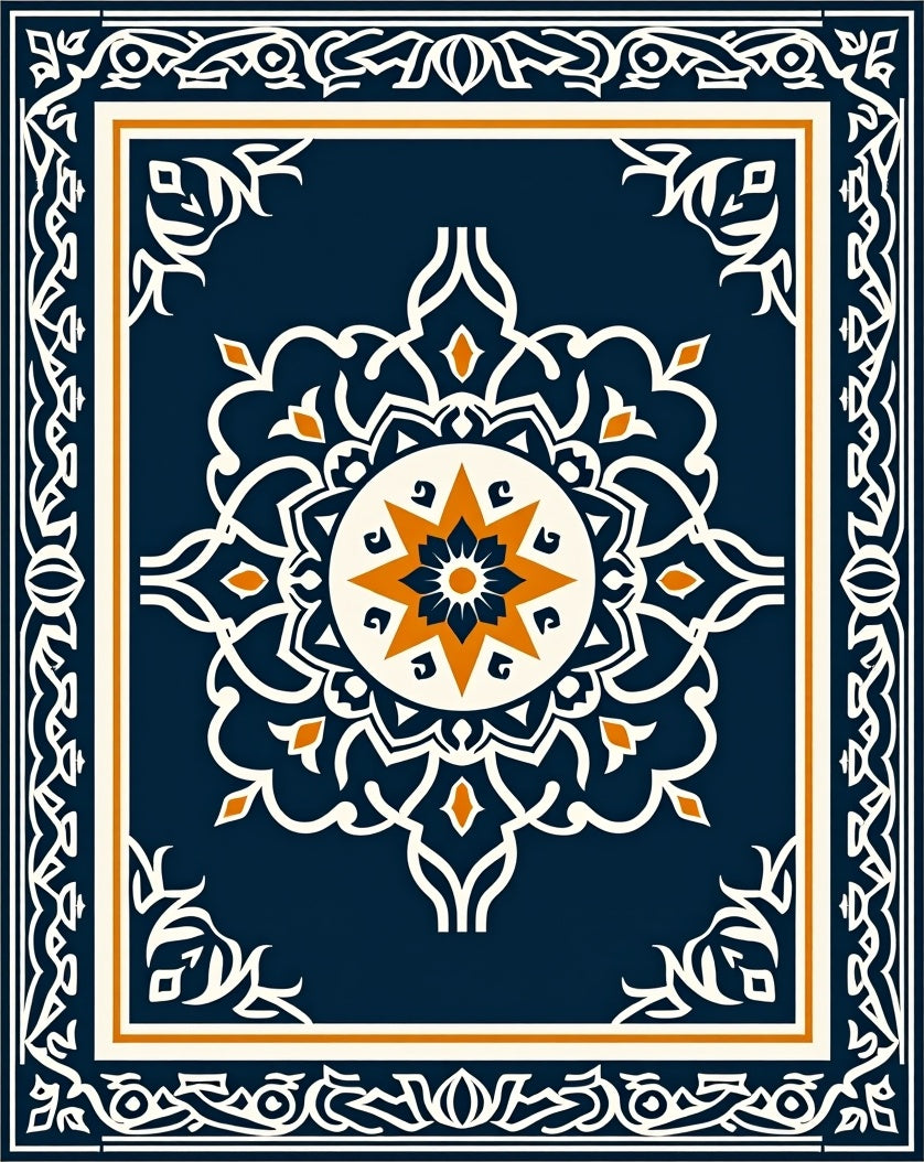 Heritage Artisan Medallion With Vintage Damask Inspiration(Navy)