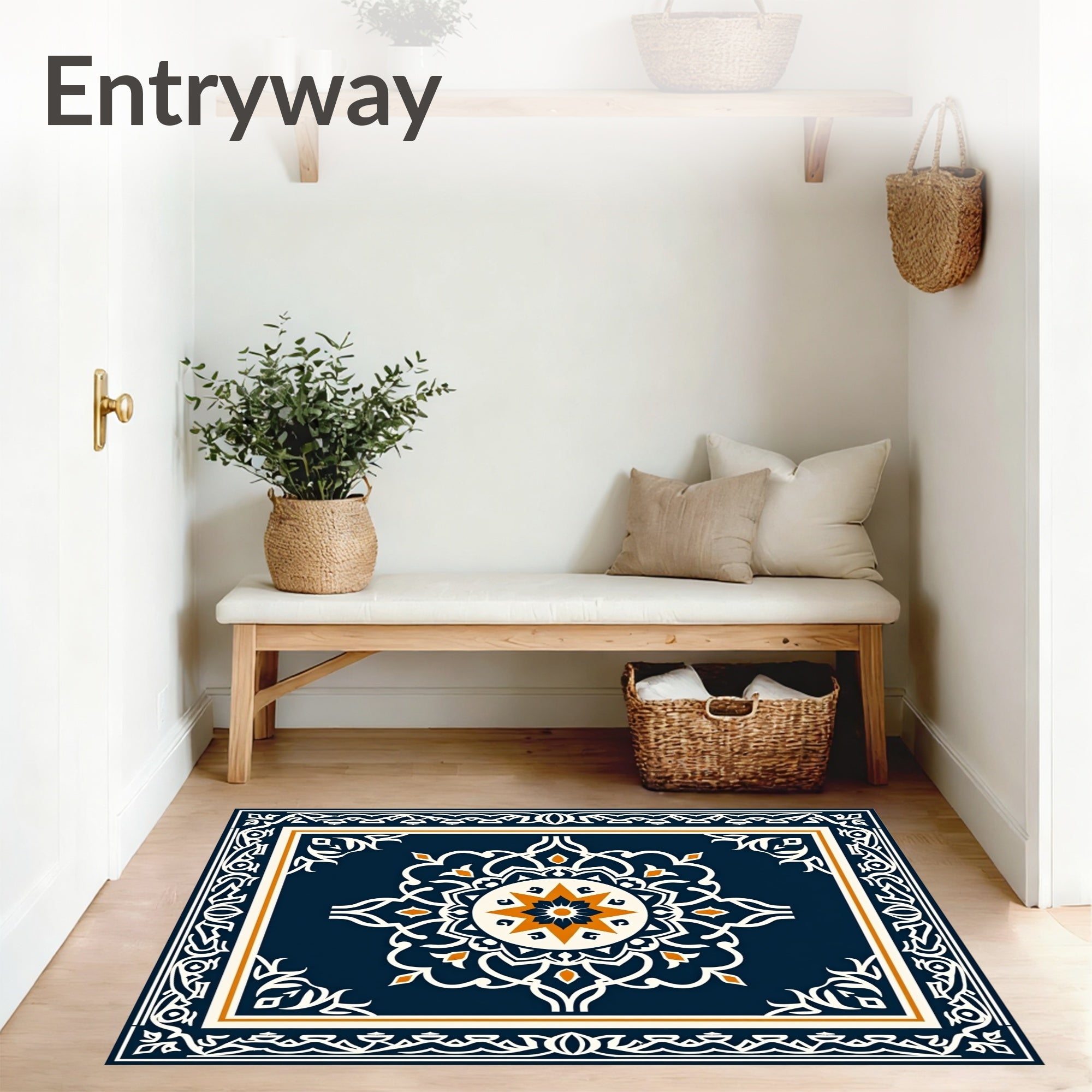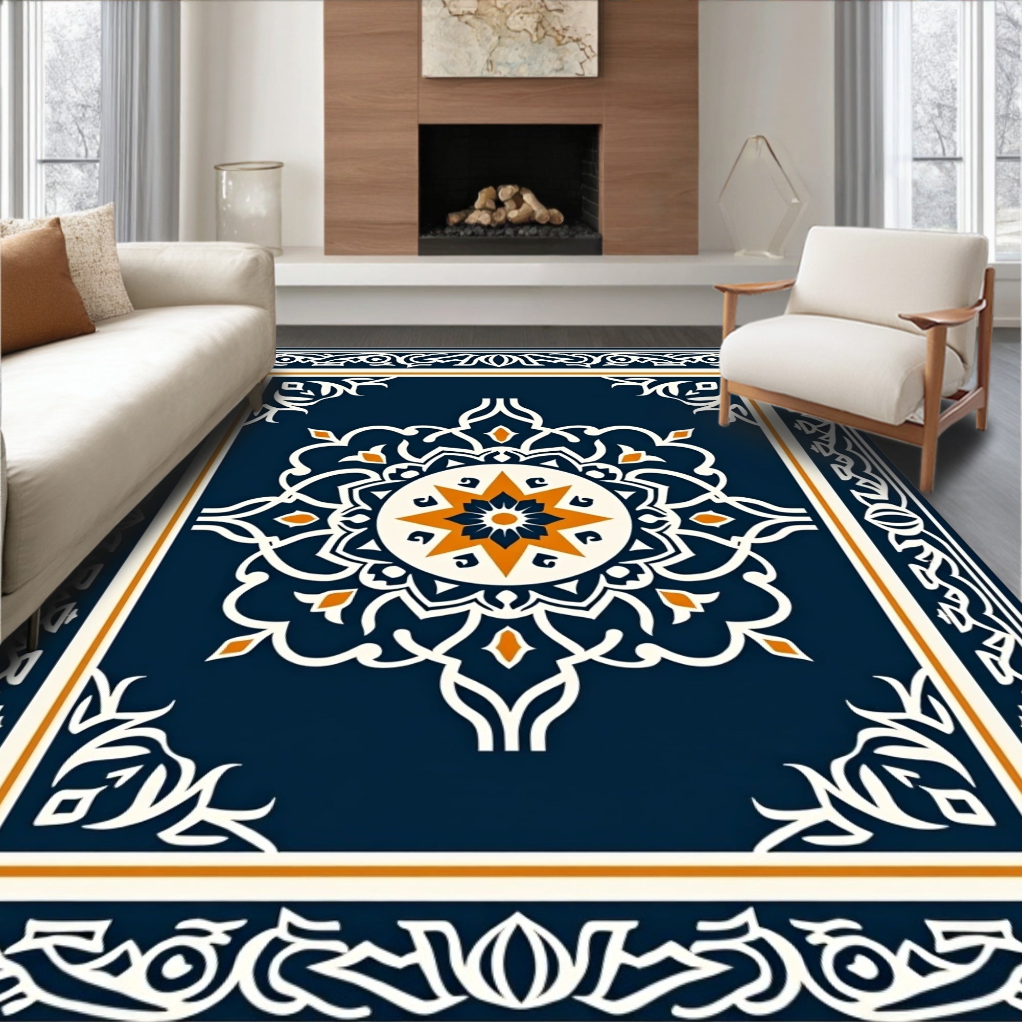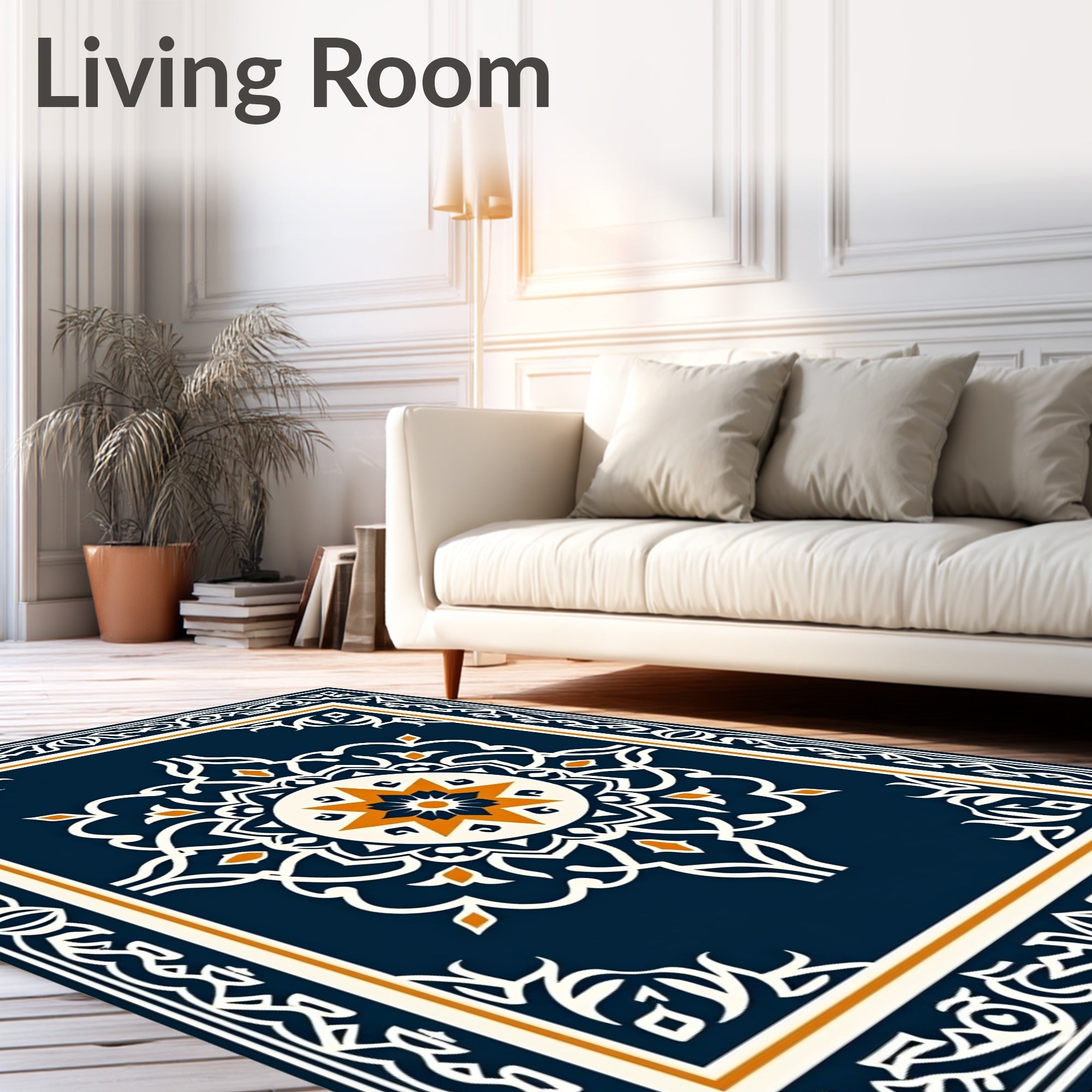Ultra Soft Area Rug, Non Slip, Stain Resistant, Washable Area Rugs for Living Room, Bedroom, Heritage Artisan Medallion With Vintage Damask Inspiration(Navy) Overview: