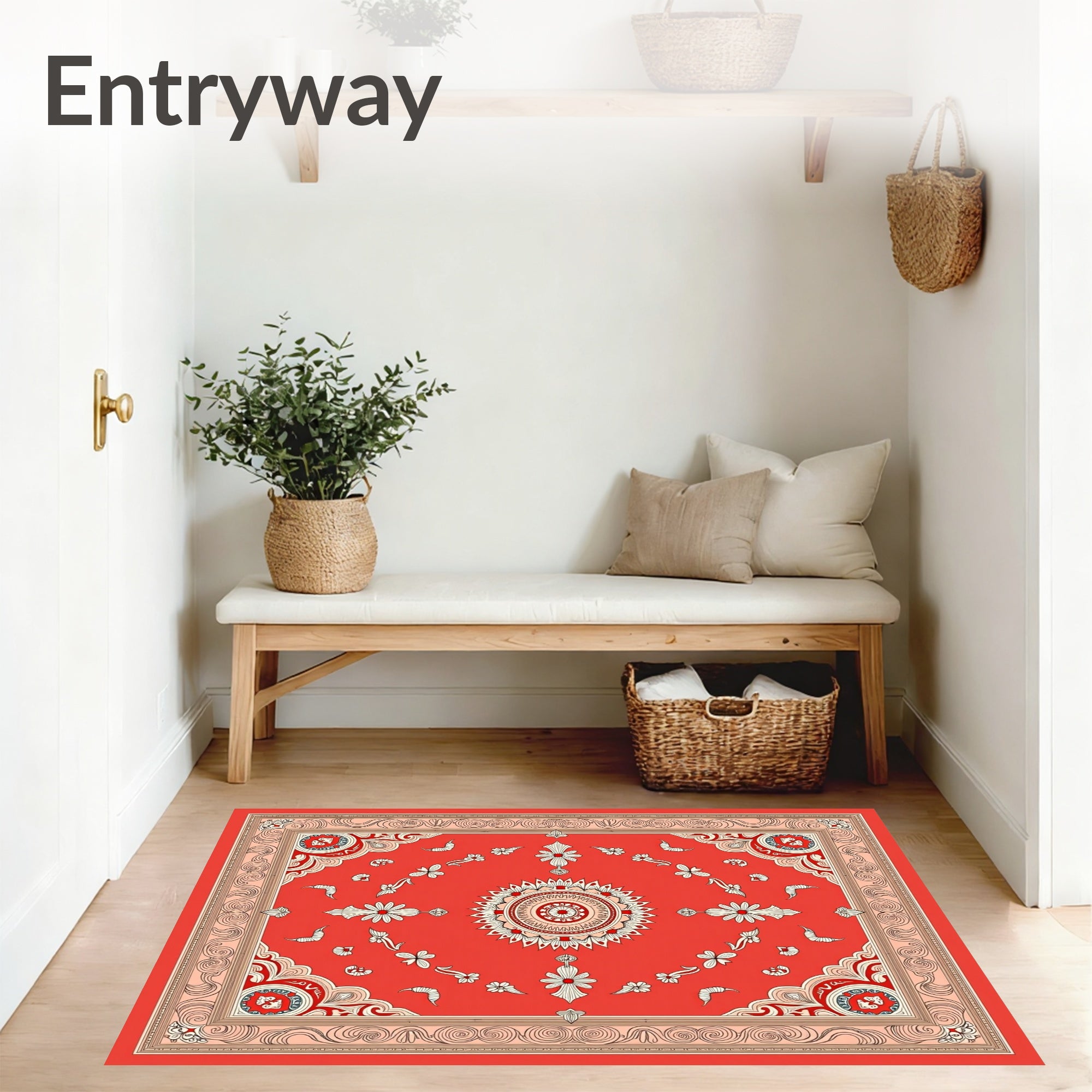 Ultra Soft Area Rug, Non Slip, Stain Resistant, Washable Area Rugs for Living Room, Bedroom, Heritage Blossom Paisley Embellished Tapestry(Red) Overview: