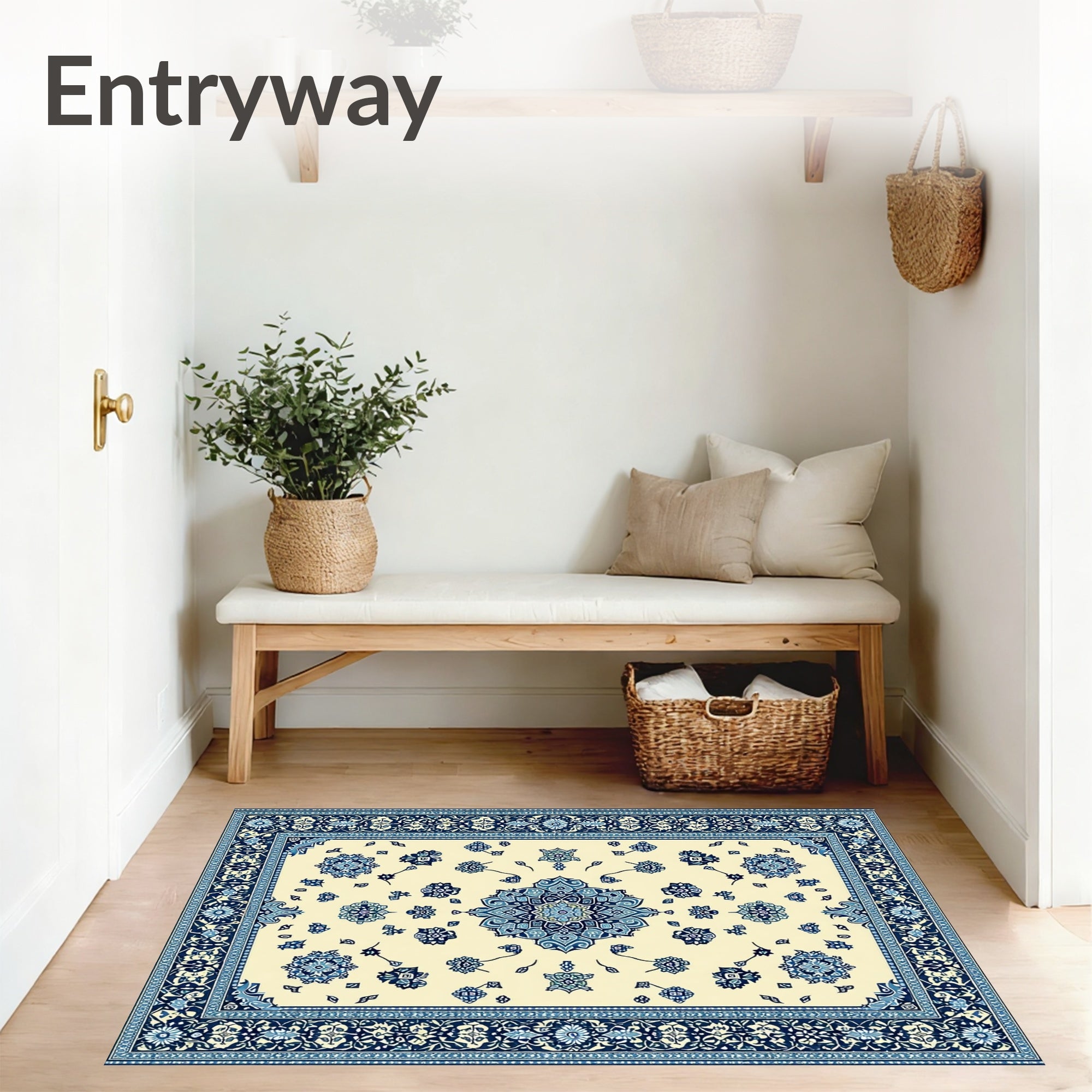Ultra Soft Area Rug, Non Slip, Stain Resistant, Washable Area Rugs for Living Room, Bedroom, Heritage Charm Traditional With Enhanced Grip Design(Beige) Overview:
