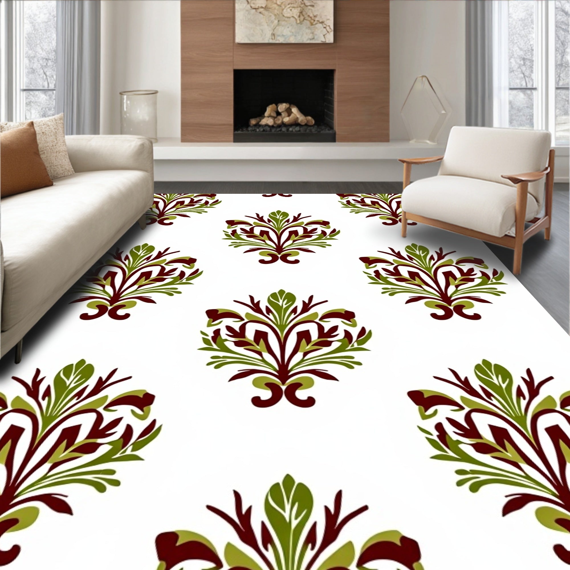Ultra Soft Area Rug, Non Slip, Stain Resistant, Washable Area Rugs for Living Room, Bedroom, Heritage Damask Elegant Foliage(Brown) Overview: