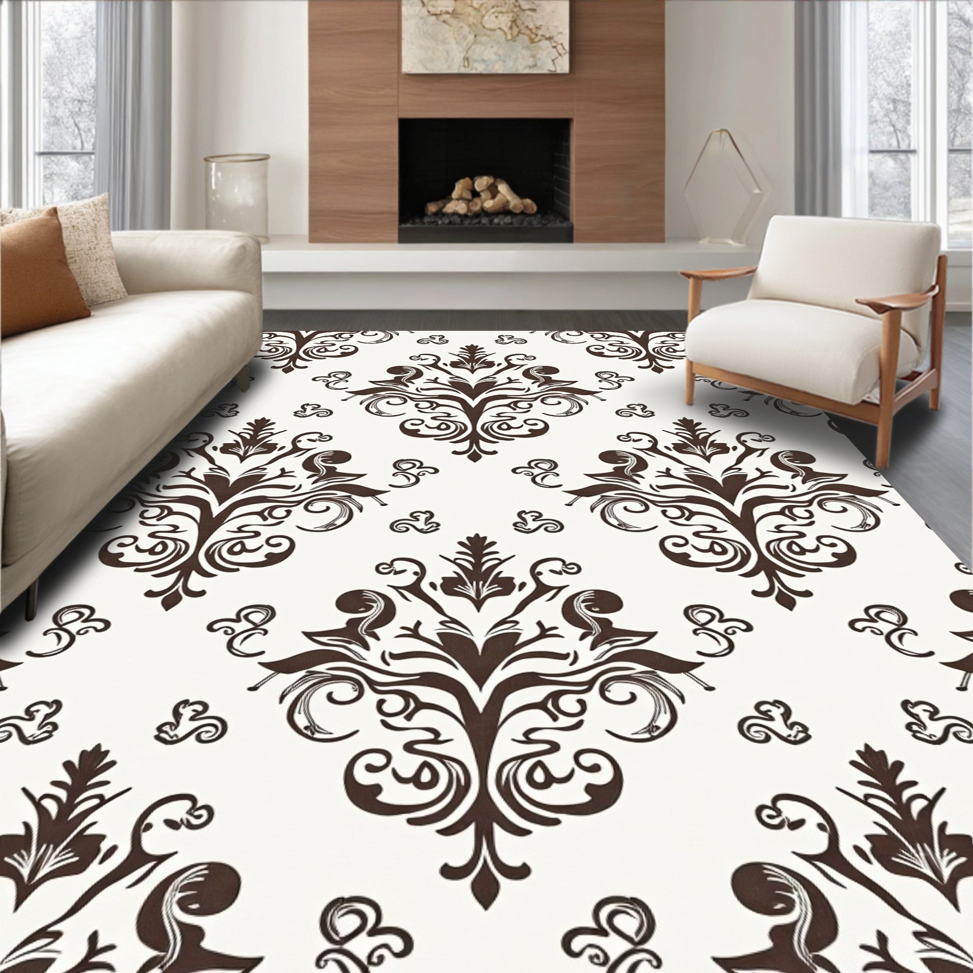 Flatwoven High Traffic Area Rug, Heritage Damask Vintage Distressed Antiqued Fade Pathway Barrier, Non Slip, Stain Resistant, Washable Area Rugs for Living Room, Bedroom (Brown) Overview: