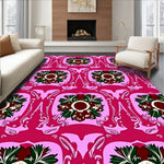 Flatwoven High Traffic Area Rug, Heritage Wreath Medallions with Baroque Vine Accents, Non Slip, Stain Resistant, Washable Area Rugs for Living Room, Bedroom (Pink) Overview:
