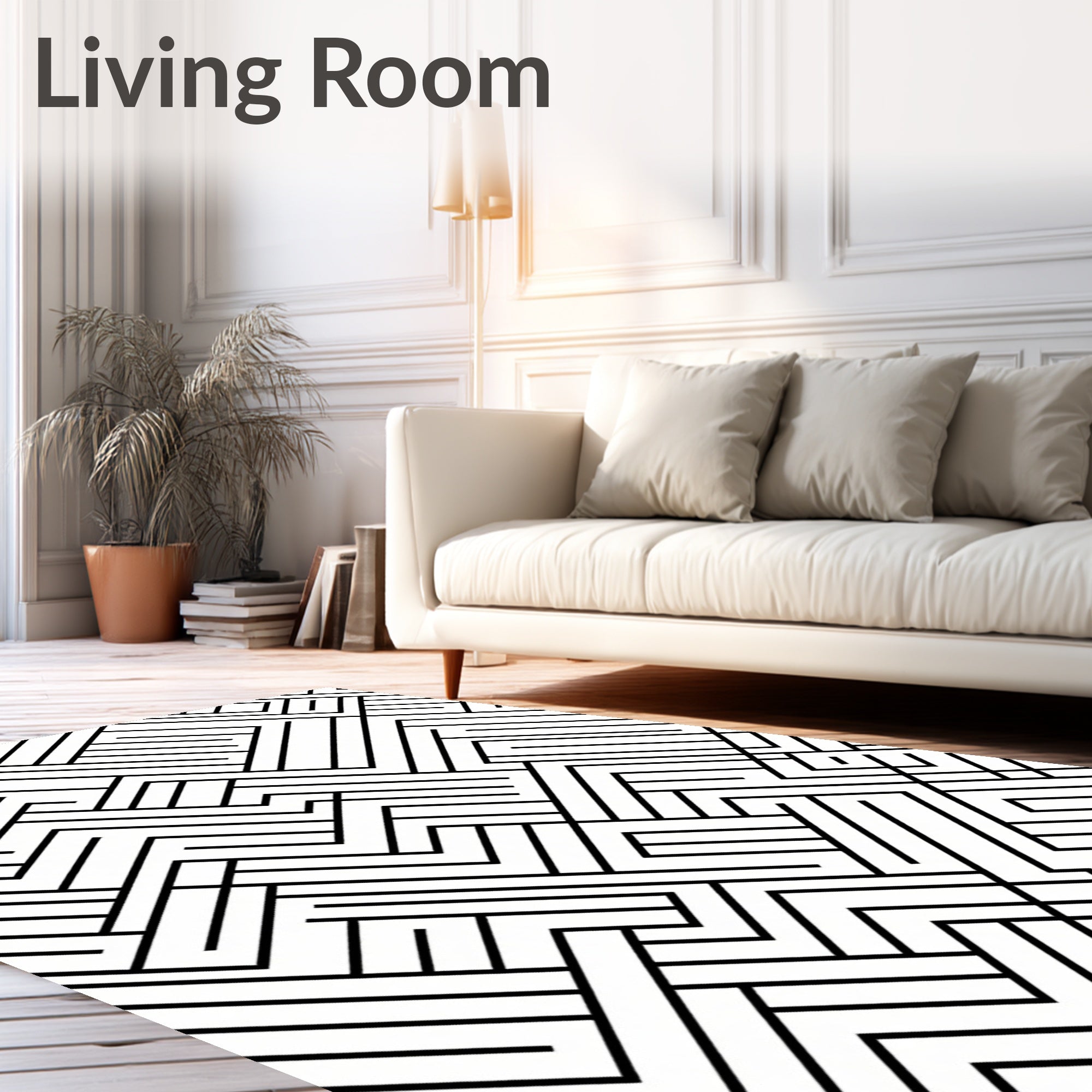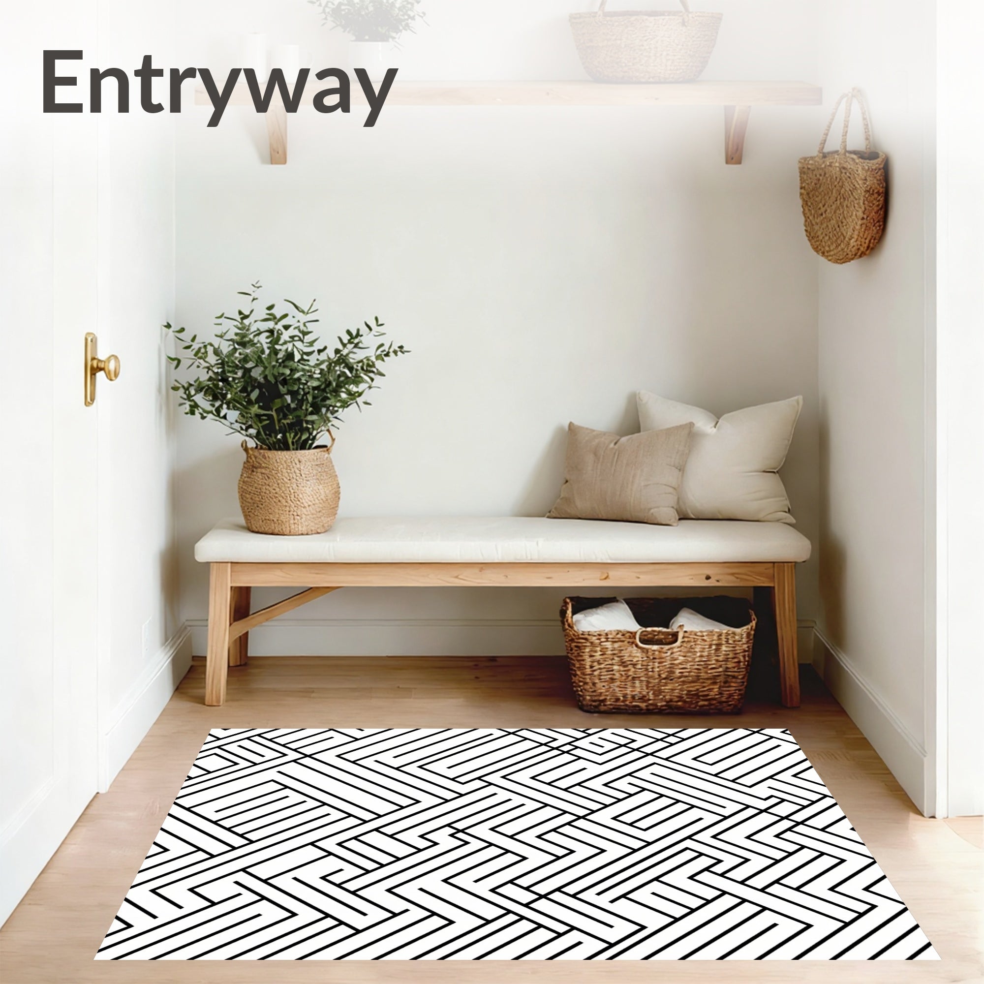 Ultra Soft Area Rug, Non Slip, Stain Resistant, Washable Area Rugs for Living Room, Bedroom, Herringbone Parquet Style Welcome with Classic Appeal(Black) Overview: