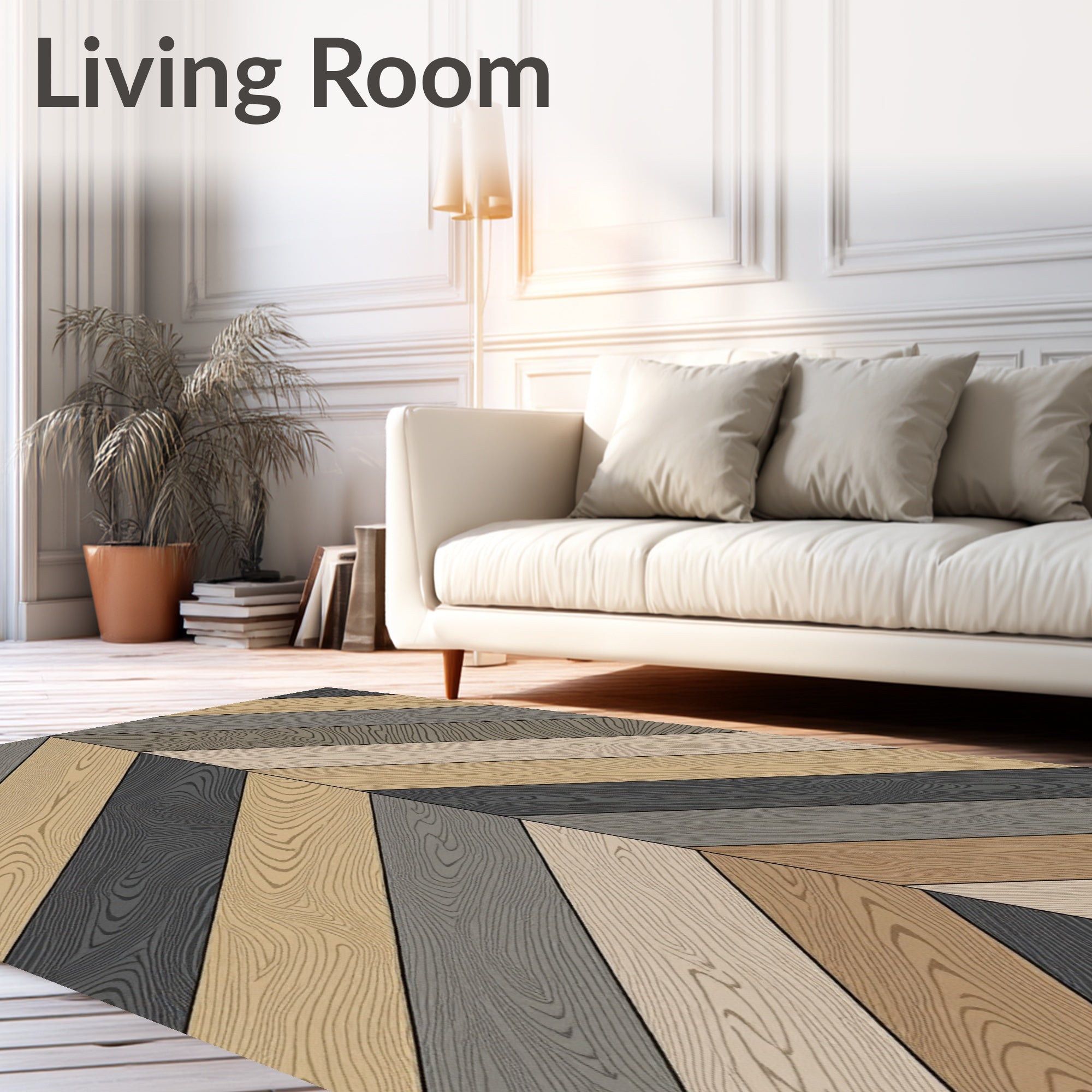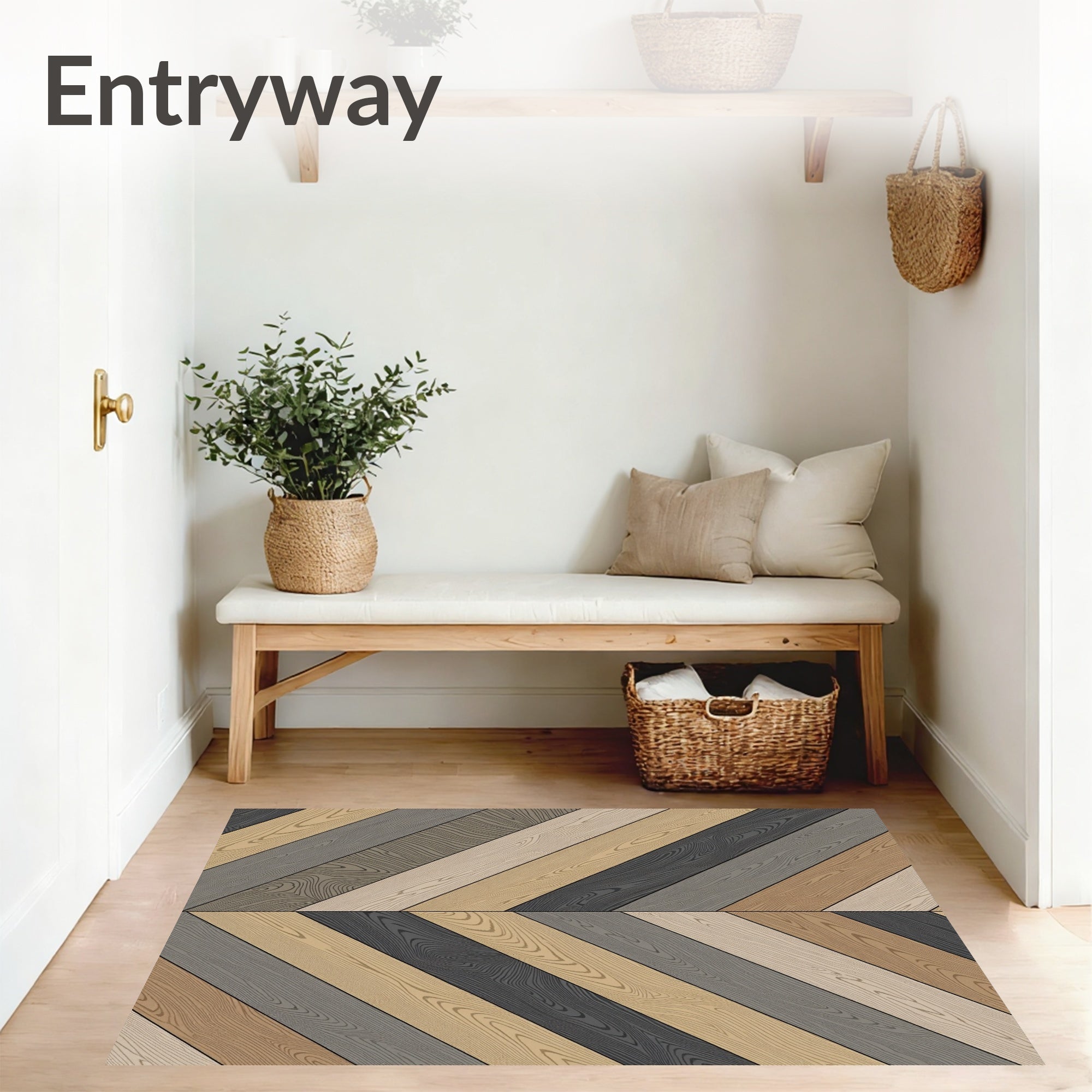 Flatwoven High Traffic Area Rug, Herringbone Parquet Wood Look Machine, Non Slip, Stain Resistant, Washable Area Rugs for Living Room, Bedroom (Brown) Overview: