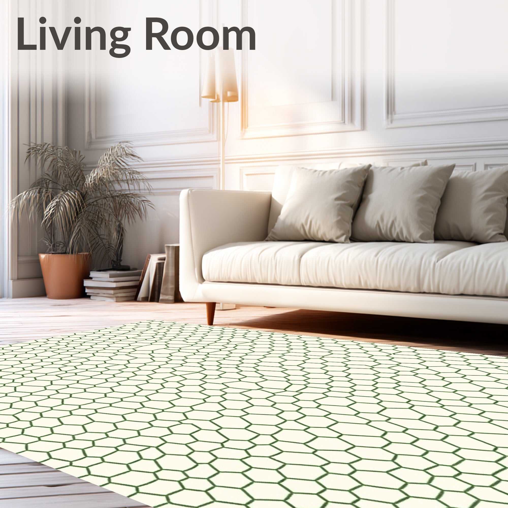Ultra Soft Area Rug, Non Slip, Stain Resistant, Washable Area Rugs for Living Room, Bedroom, Hexagon Honeycomb Machine Indoor Easy Cleaning(Green) Overview: