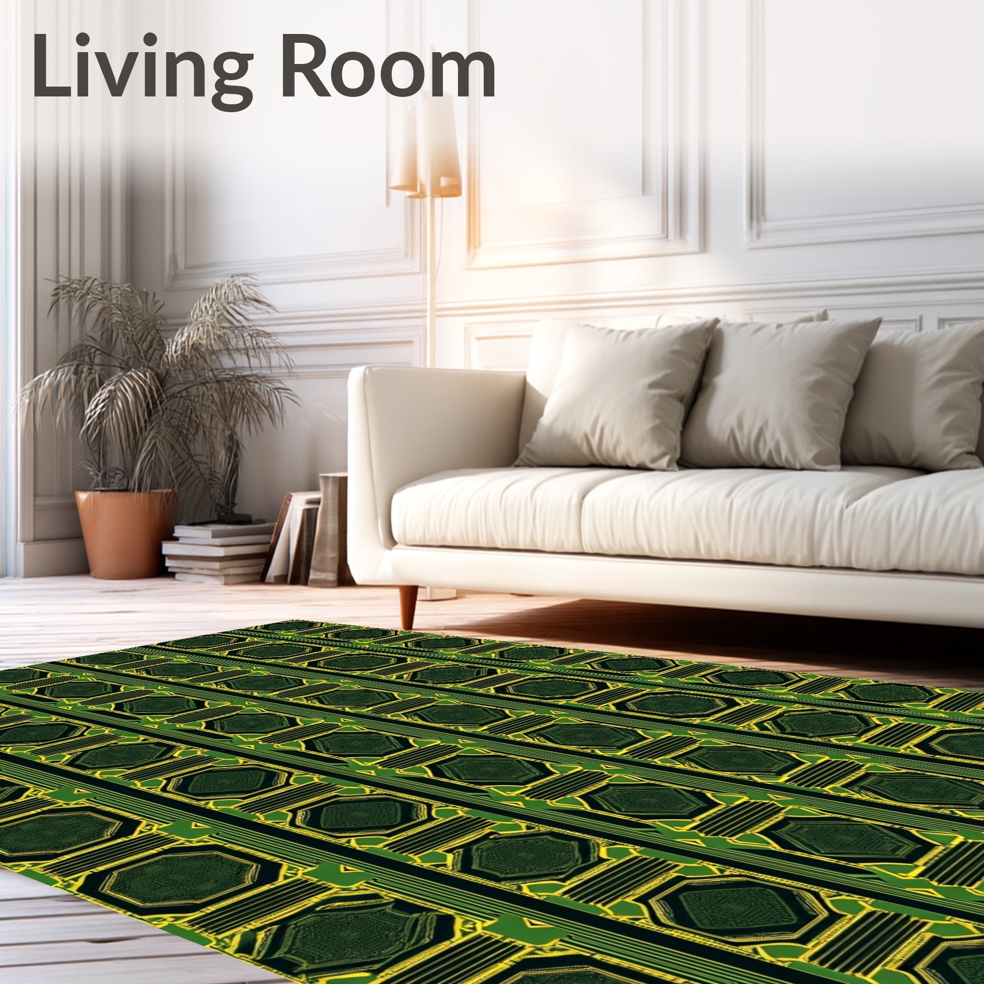 Ultra Soft Area Rug, Non Slip, Stain Resistant, Washable Area Rugs for Living Room, Bedroom, Hexagonal Hive Network Accent with Modern Angular Motifs(Green) Overview: