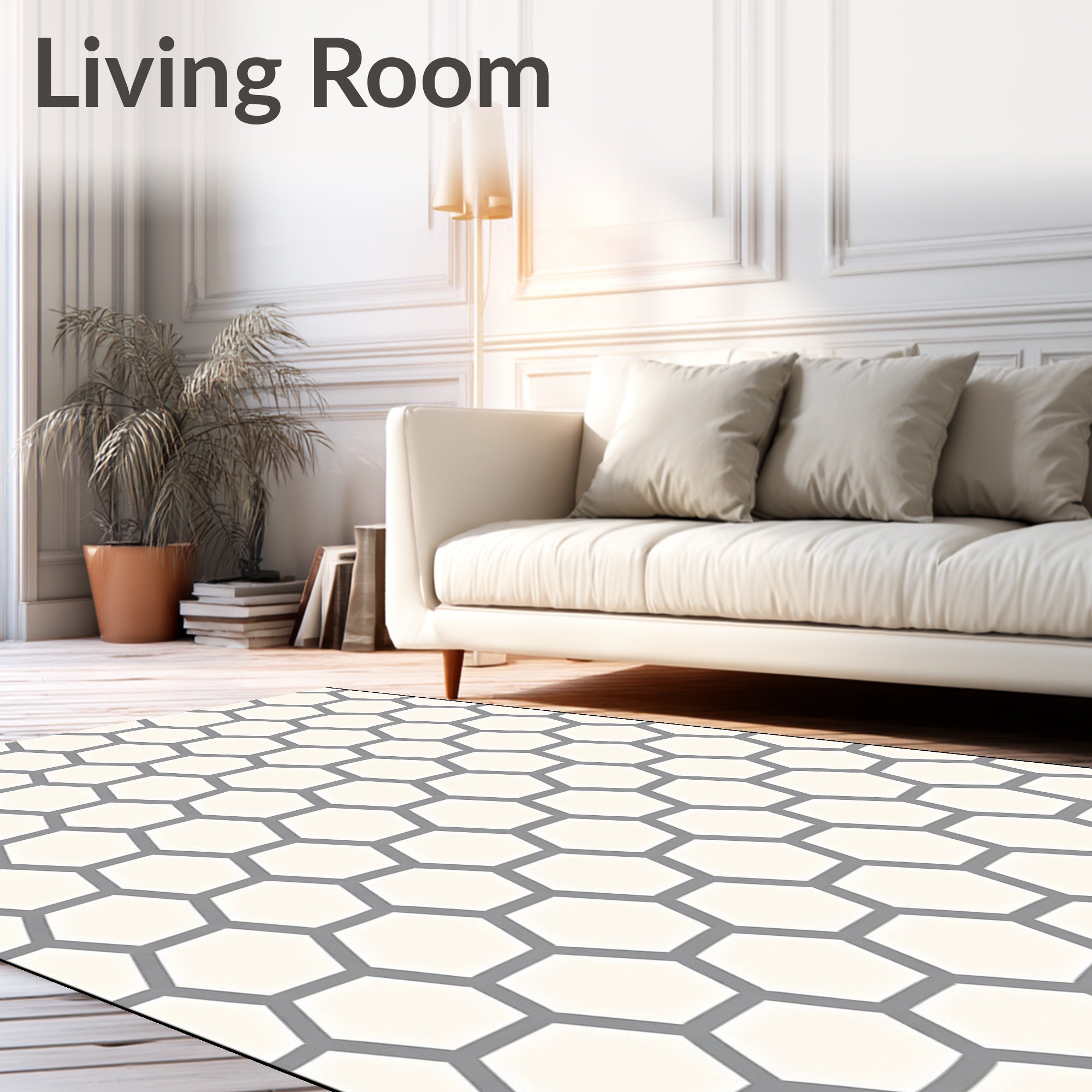 Ultra Soft Area Rug, Non Slip, Stain Resistant, Washable Area Rugs for Living Room, Bedroom, Hexagonal Honeycomb Tessellation with Repeating Cell(White) Overview: