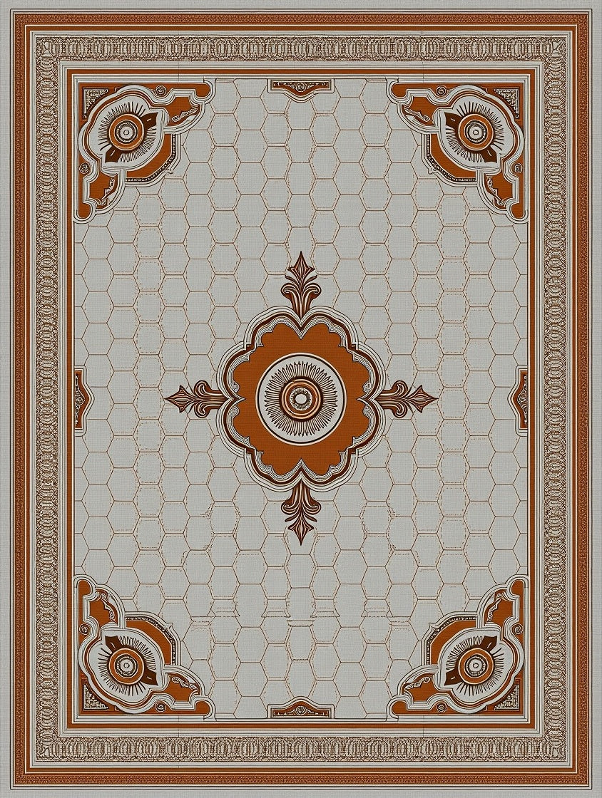 Hexagonal Honeycomb with Vintage Medallion Accents(Brown)
