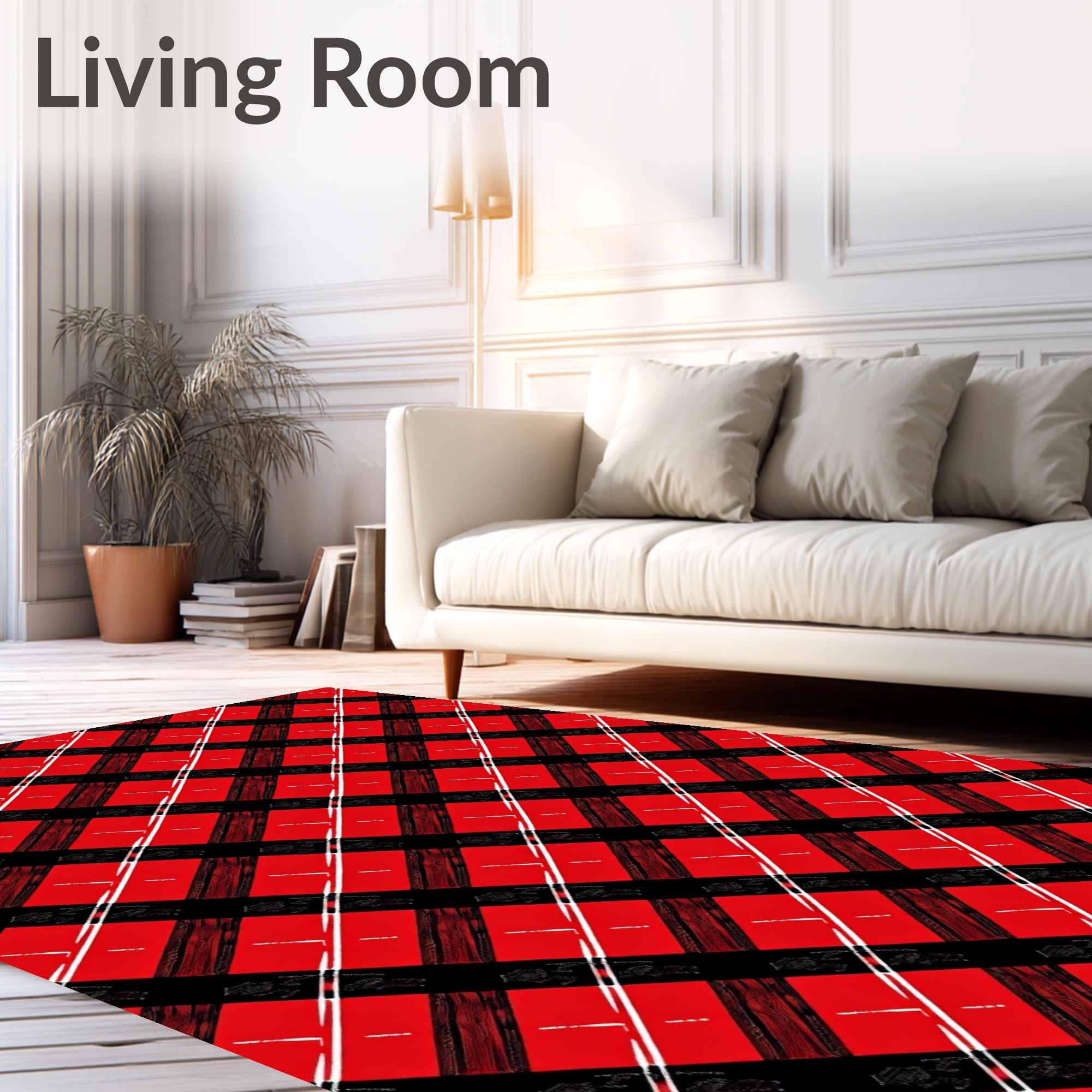 Ultra Soft Area Rug, Non Slip, Stain Resistant, Washable Area Rugs for Living Room, Bedroom, Highland Tartan Festive(Red) Overview: