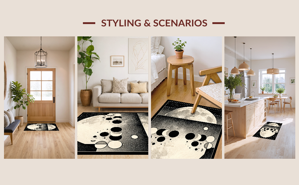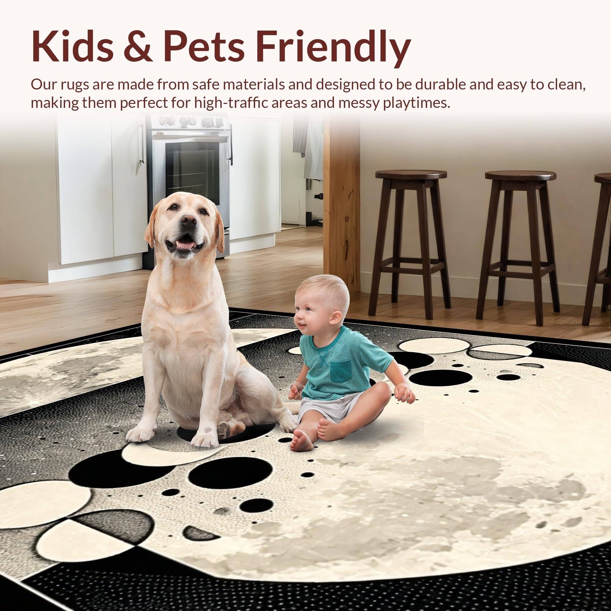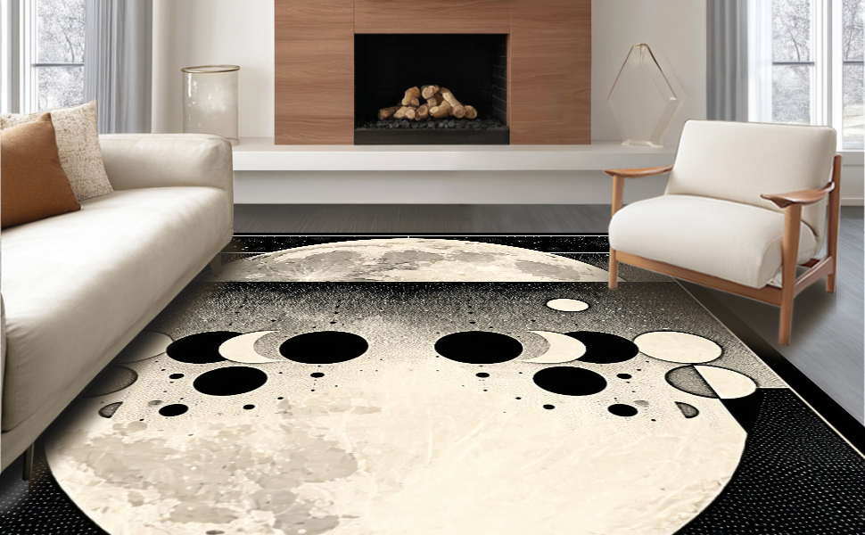 Ultra Soft Area Rug, Non Slip, Stain Resistant, Washable Area Rugs for Living Room, Bedroom, Hippie Inspired Celestial Motif(Beige) Overview: