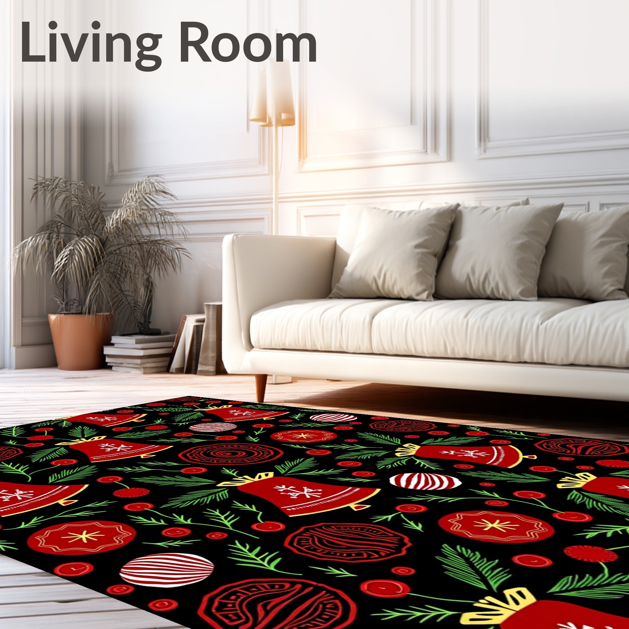 Ultra Soft Area Rug, Non Slip, Stain Resistant, Washable Area Rugs for Living Room, Bedroom, Holiday Bells Ensemble Featuring Winter Berry and Pinecone(Red) Overview: