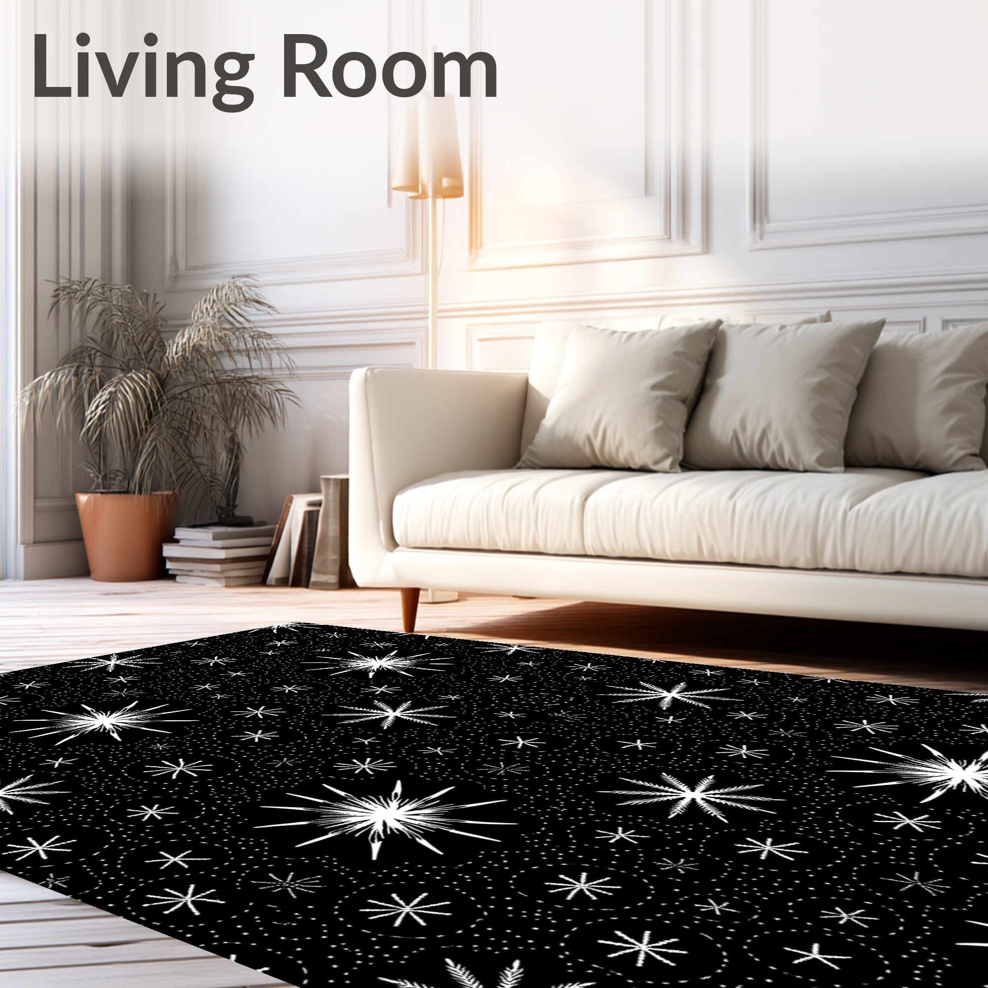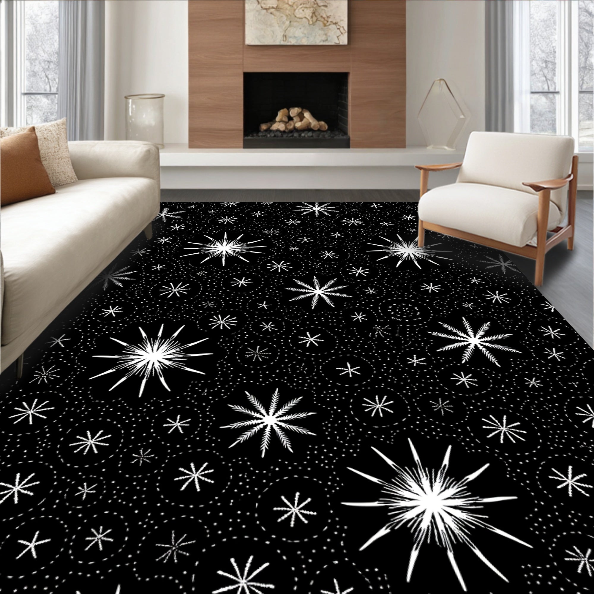 Flatwoven High Traffic Area Rug, Holiday Burst Snowfall Design Christmas Floor, Non Slip, Stain Resistant, Washable Area Rugs for Living Room, Bedroom (Black) Overview: