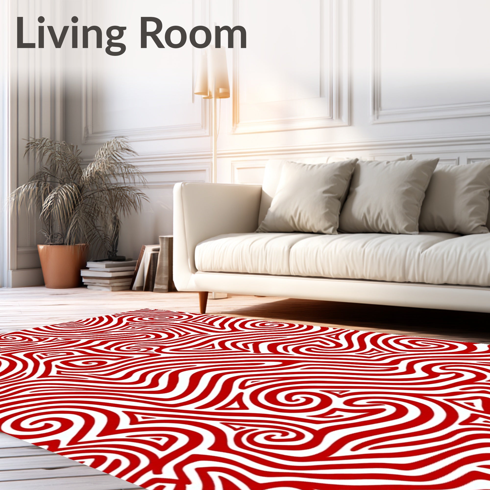 Ultra Soft Area Rug, Non Slip, Stain Resistant, Washable Area Rugs for Living Room, Bedroom, Holiday Cane Swirl Festive Peppermint Stripe Design(Red) Overview: