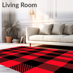 Ultra Soft Area Rug, Non Slip, Stain Resistant, Washable Area Rugs for Living Room, Bedroom, Holiday Checkered Entry with Festive Cabin Squares(Red) Overview: