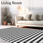 Ultra Soft Area Rug, Non Slip, Stain Resistant, Washable Area Rugs for Living Room, Bedroom, Holiday Checkered Floor Covering with Traditional Grid Design(Black) Overview: