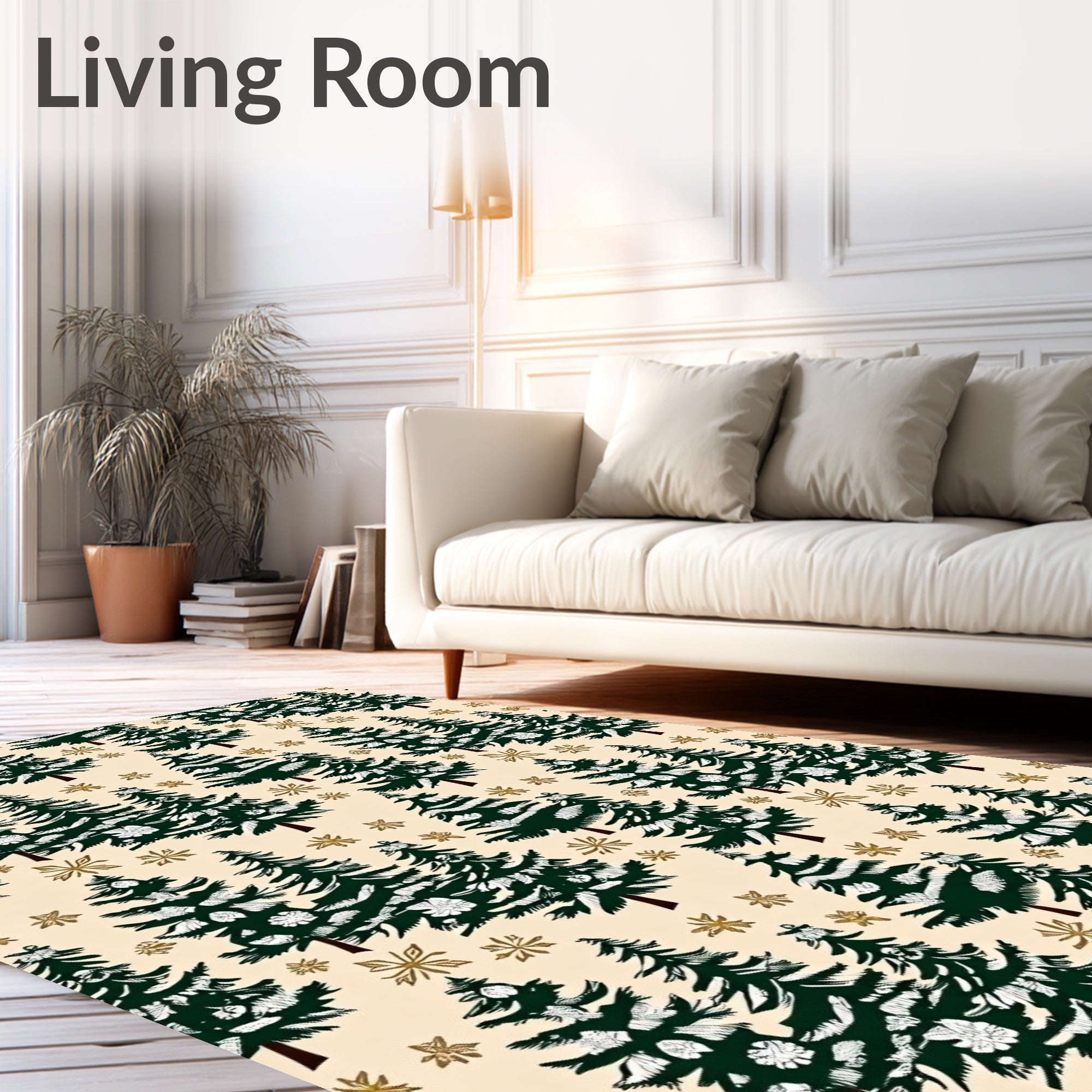 Flatwoven High Traffic Area Rug, Holiday Evergreen Crystalline Half Round Entrance, Non Slip, Stain Resistant, Washable Area Rugs for Living Room, Bedroom (Beige) Overview: