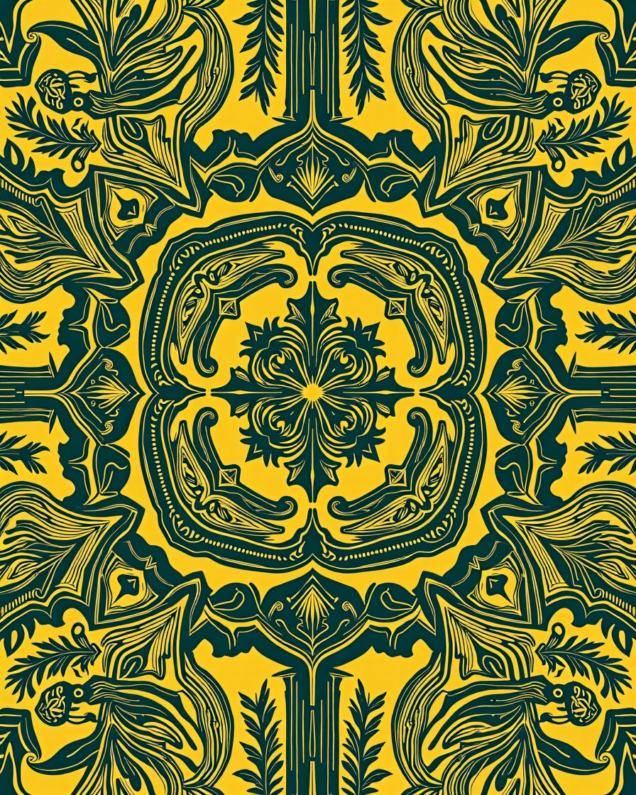 Holiday Forest Interlocking with Gold Filigree Highlights(Yellow)